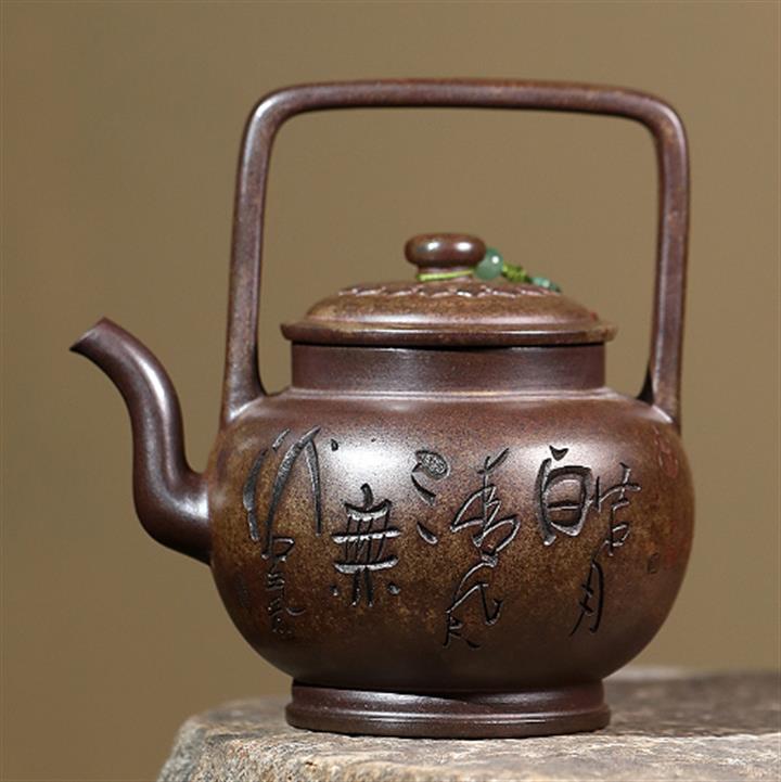 原礦高溫柴燒雲霧沈香泥手工提梁壺POT6652