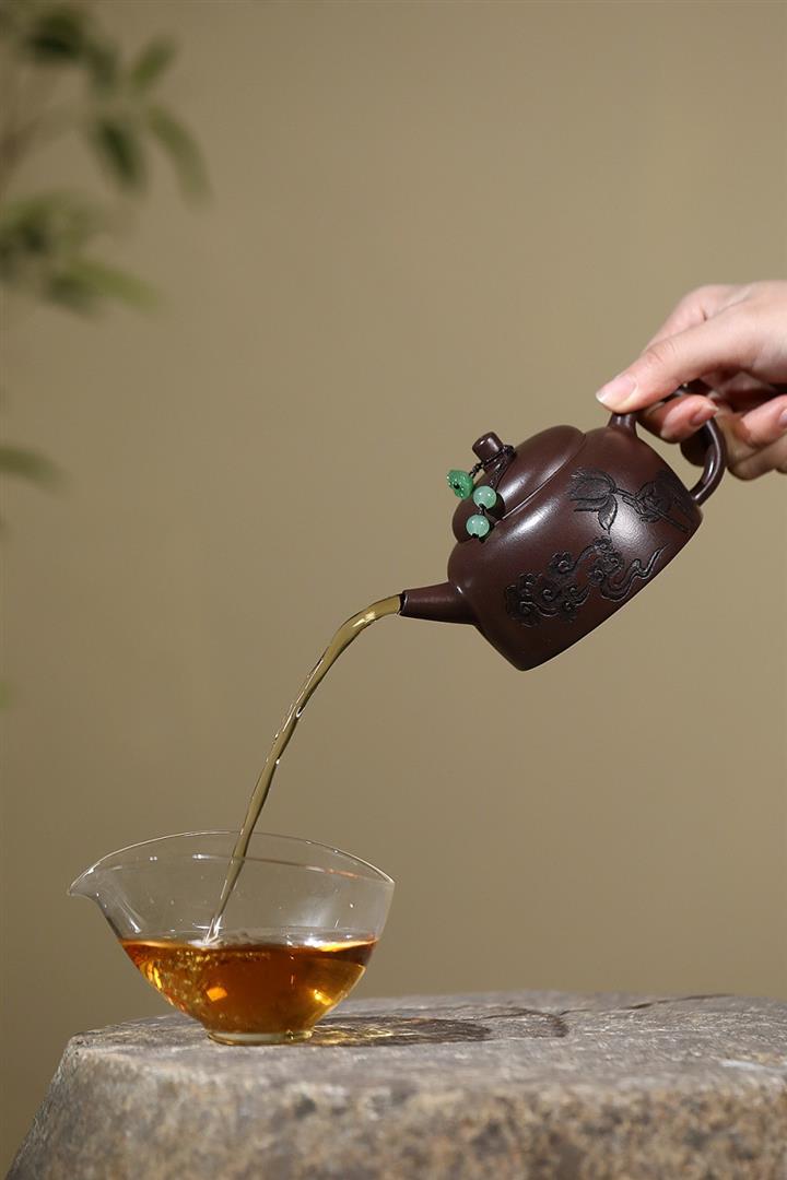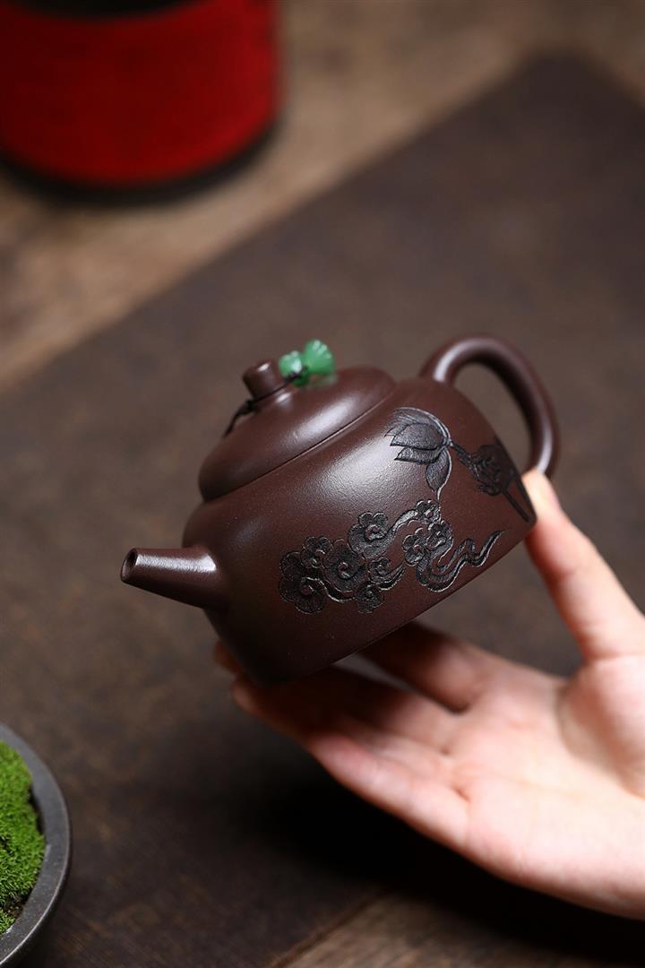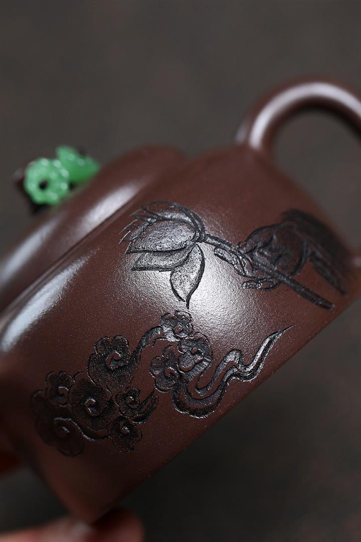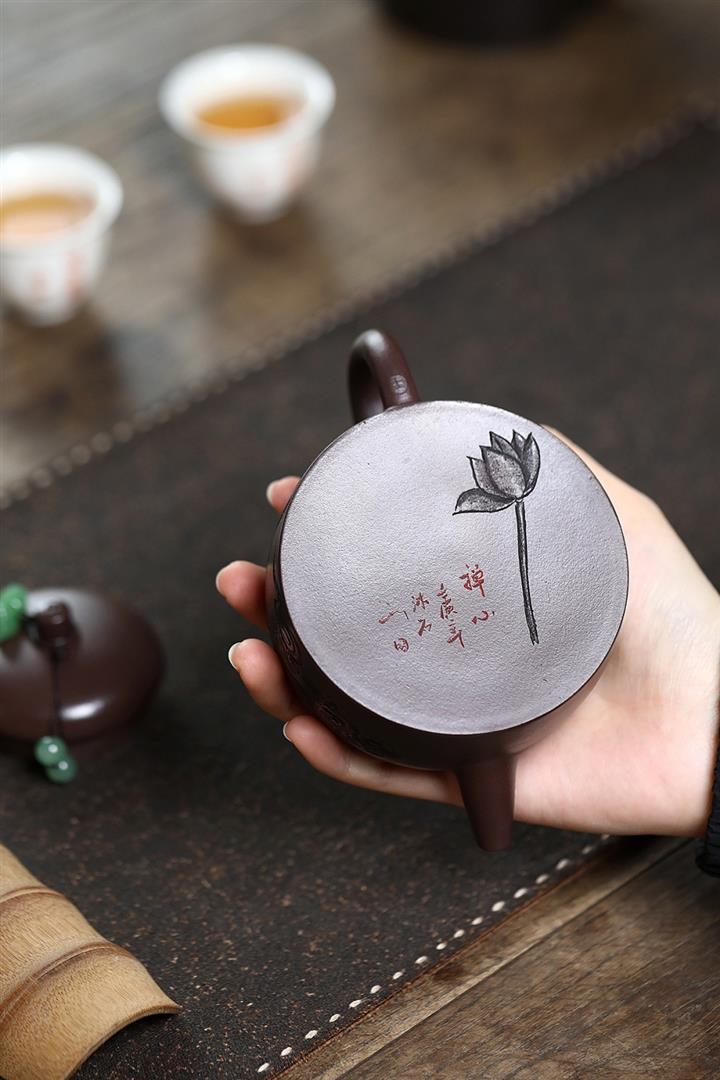 原礦老紫泥手工祥雲禪心德鐘茶壺POT6647