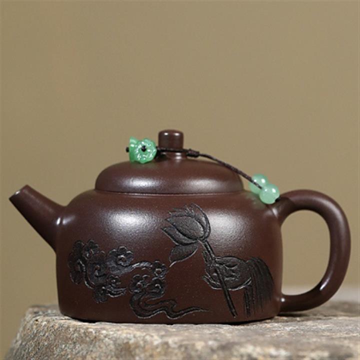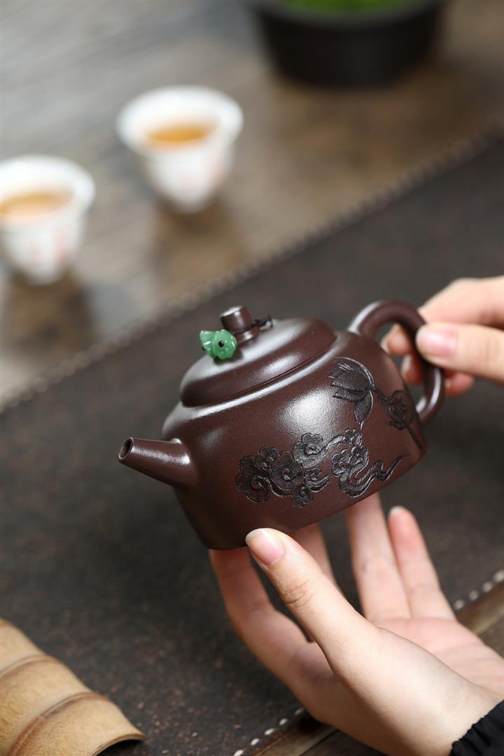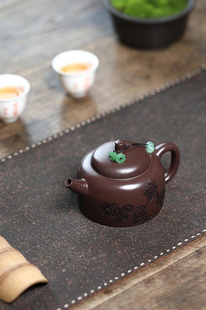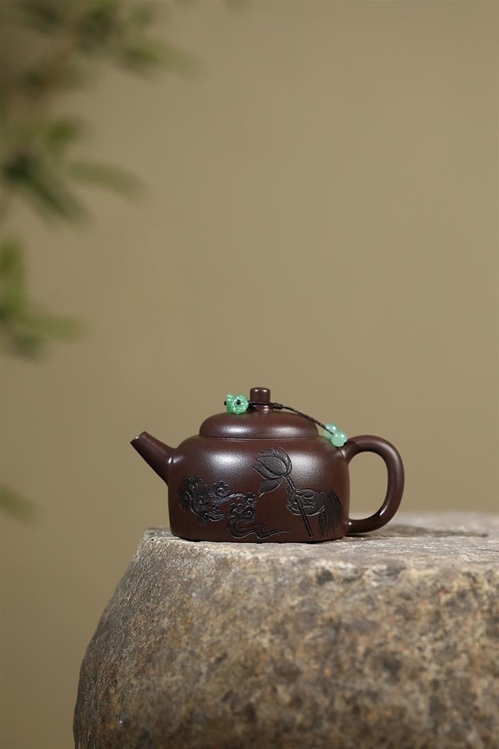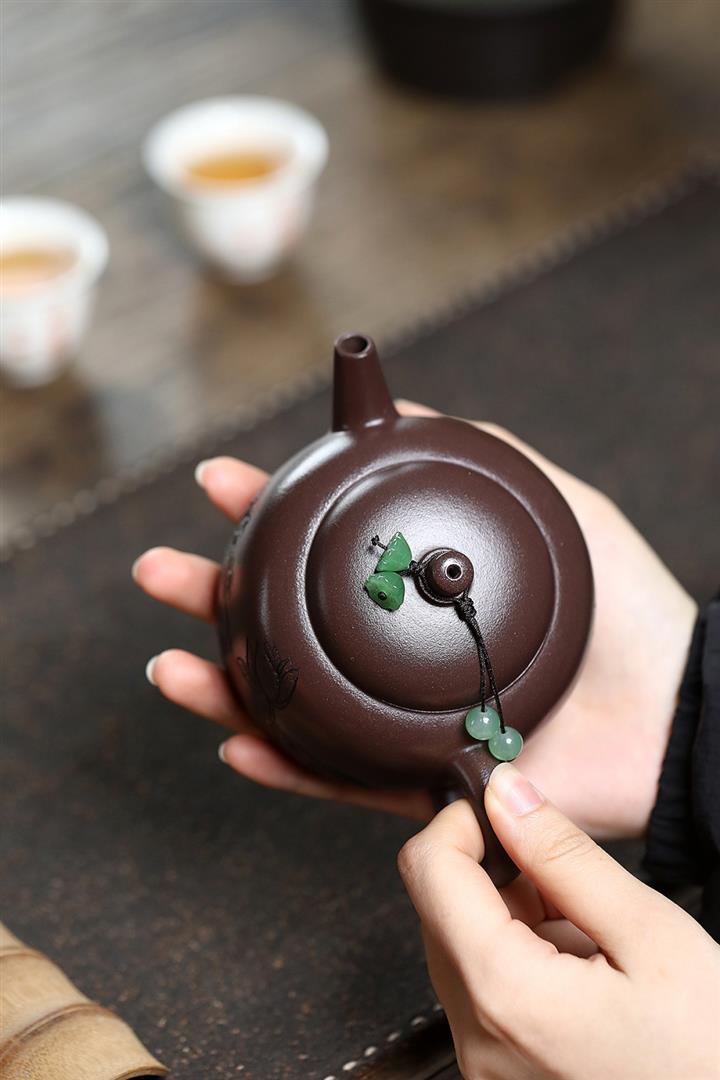 原礦老紫泥手工祥雲禪心德鐘茶壺POT6647