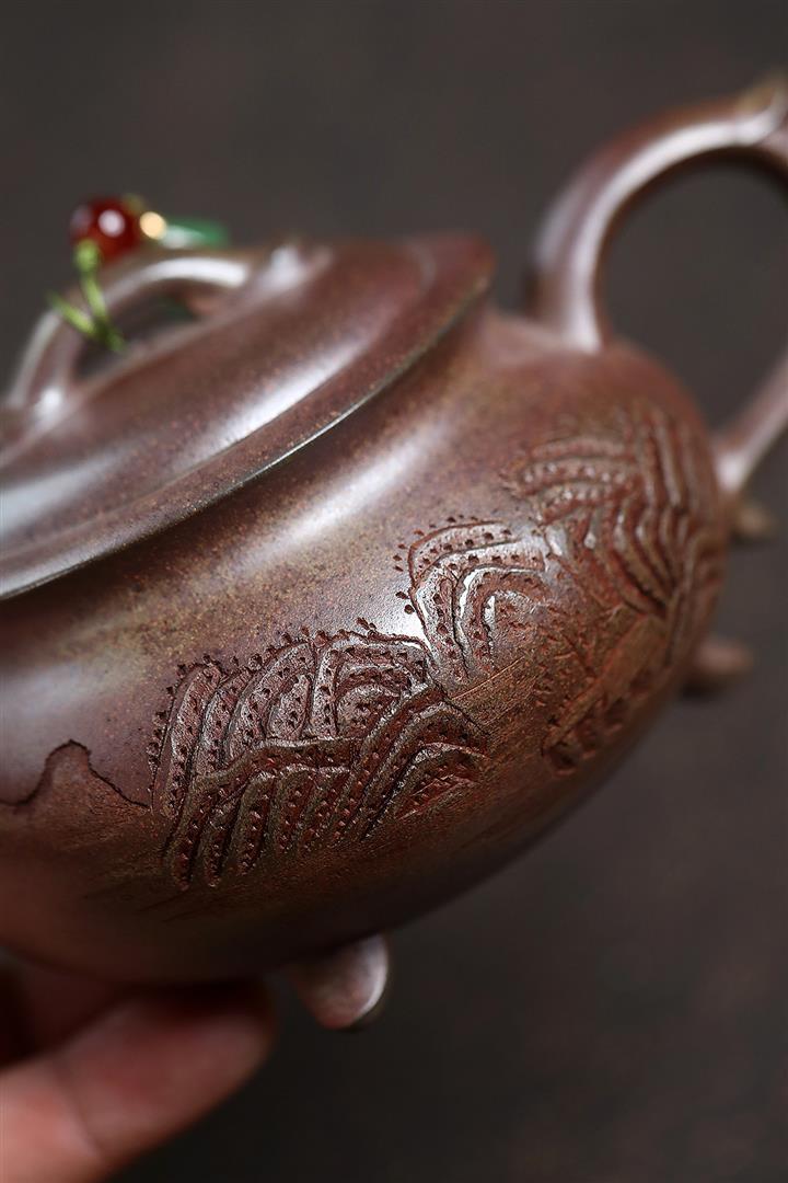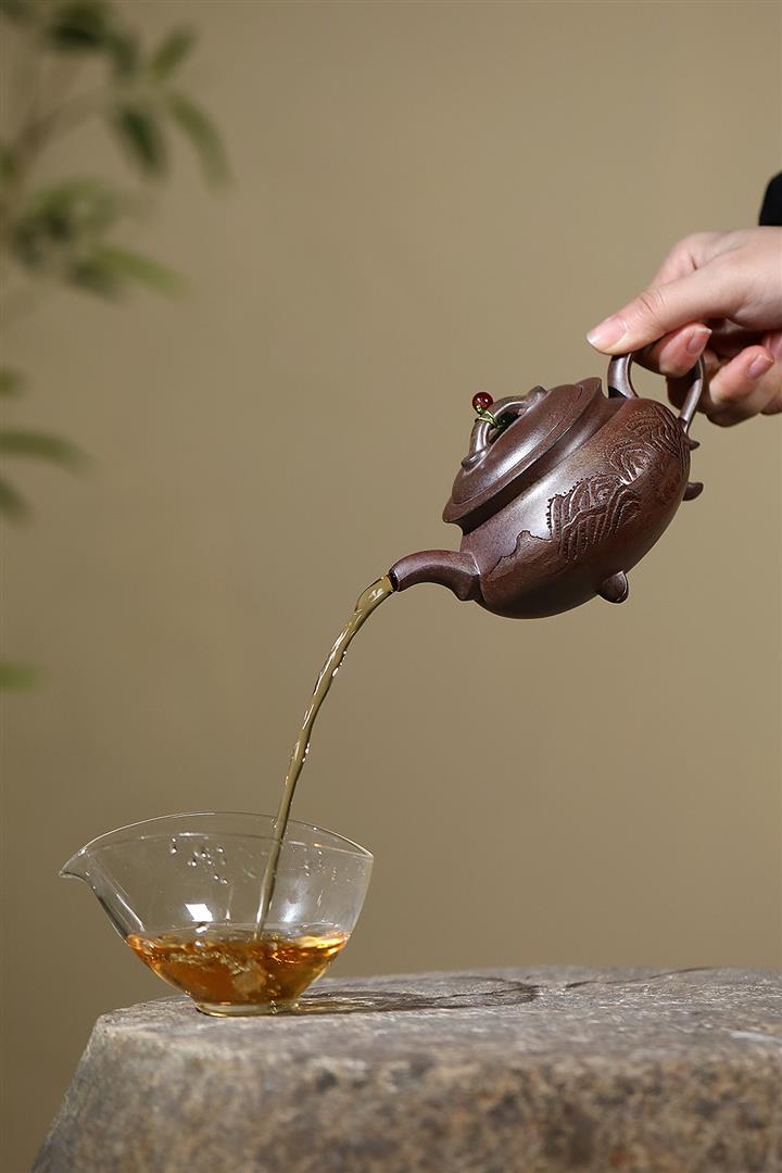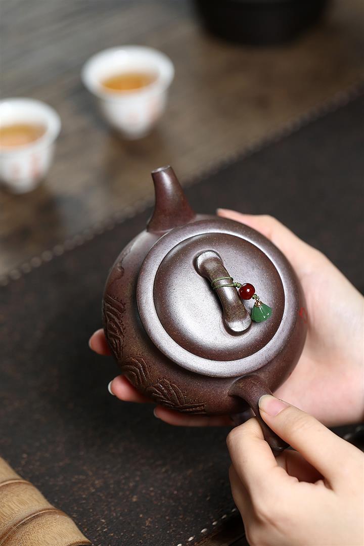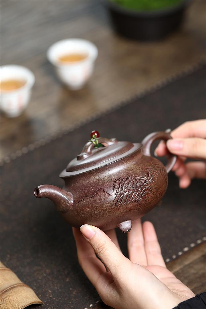 紫砂使用越久,壺身色澤越發光亮照人,氣韻溫雅。紫砂壺長久使用器身會因撫摸擦拭,變得越發溫潤光澤!