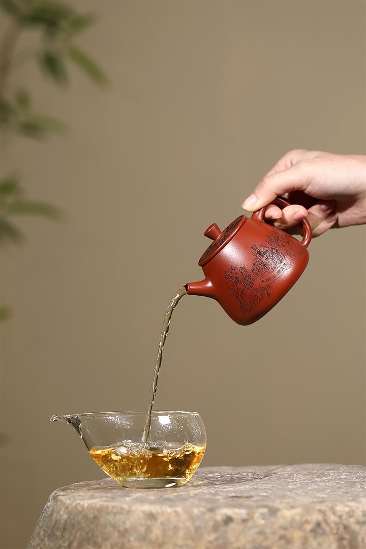 紫砂使用越久,壺身色澤越發光亮照人,氣韻溫雅。紫砂壺長久使用器身會因撫摸擦拭,變得越發溫潤光澤!