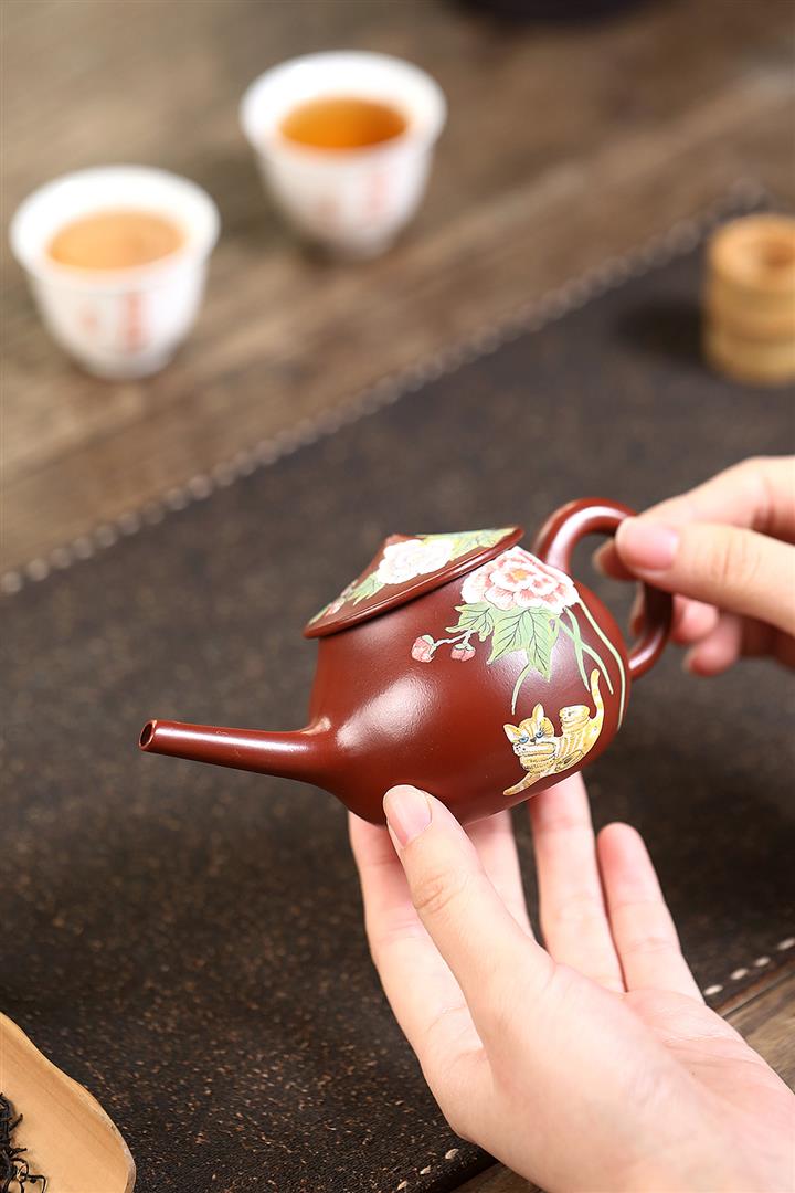 原礦大紅袍手工彩繪漁翁茶壺POT6656
