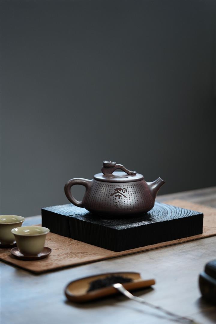 原礦龍骨金砂高溫柴燒竹影茶壺POT6668