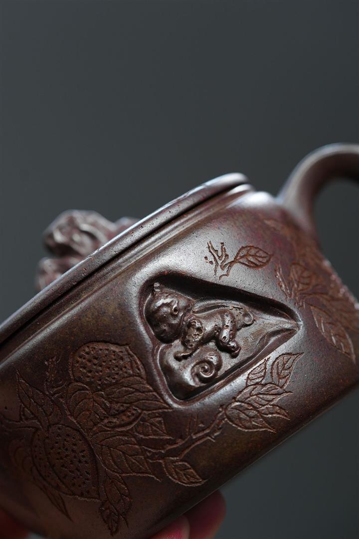 原礦老紫泥手工魚趣蓮蓬茶壺POT6671