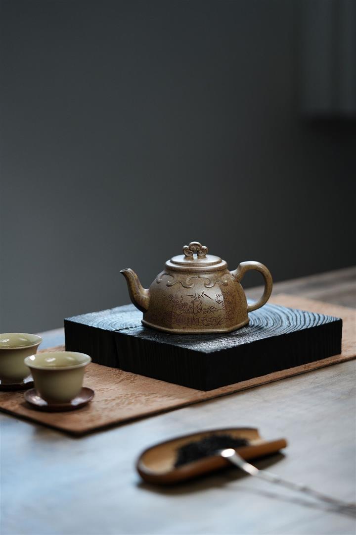 原礦龍骨金砂高溫柴燒竹影茶壺POT6668