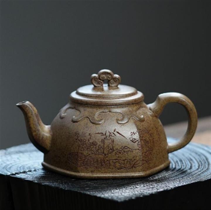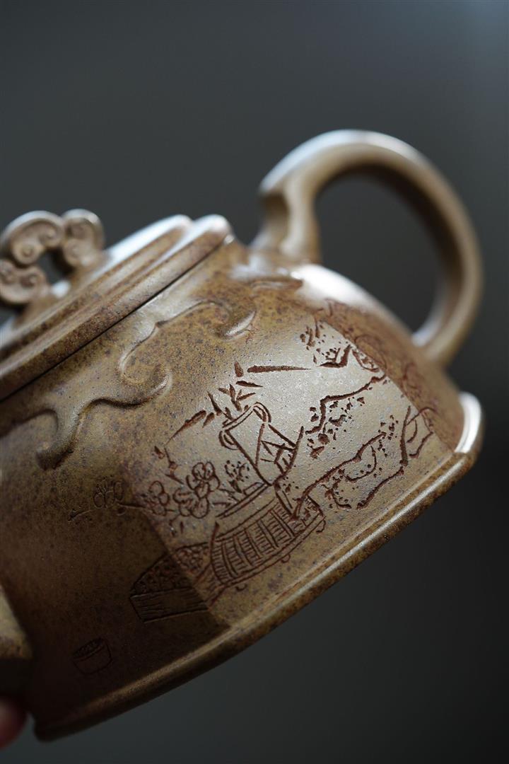 原礦雲霧沈香泥手工六方如意茶壺POT6663