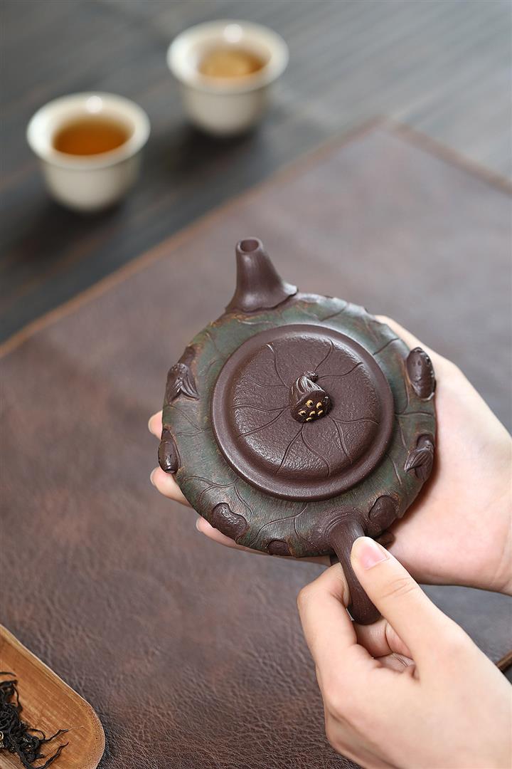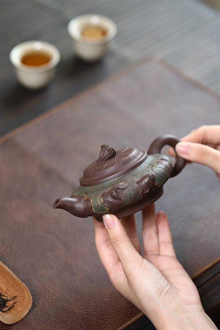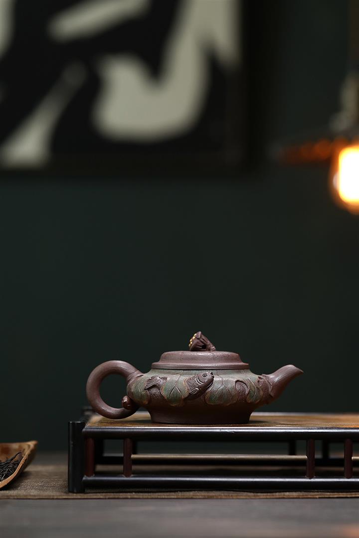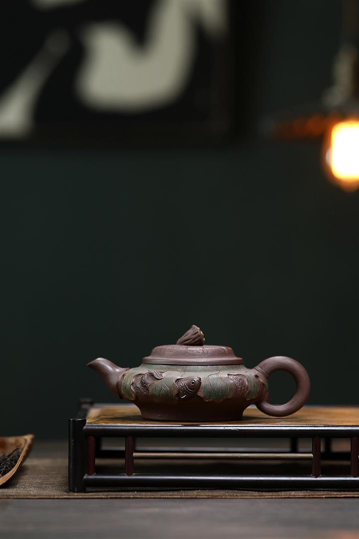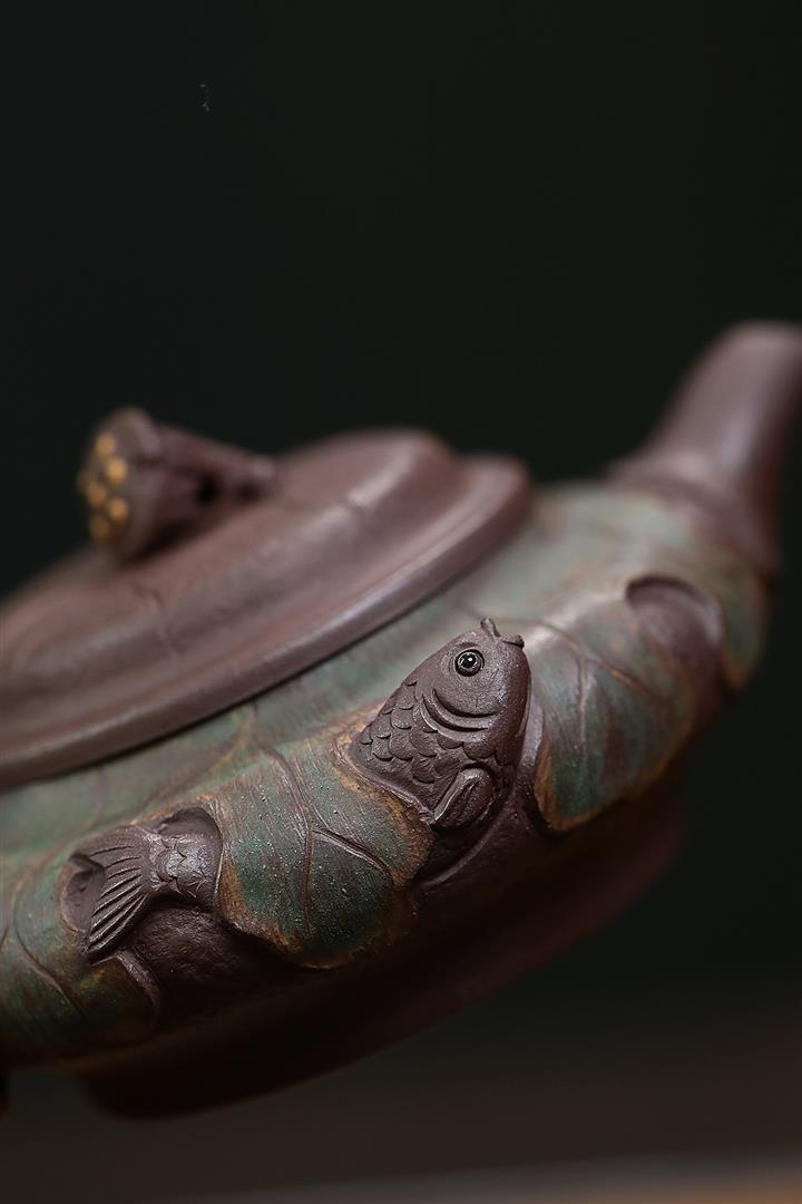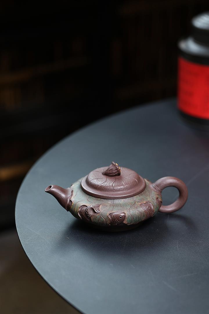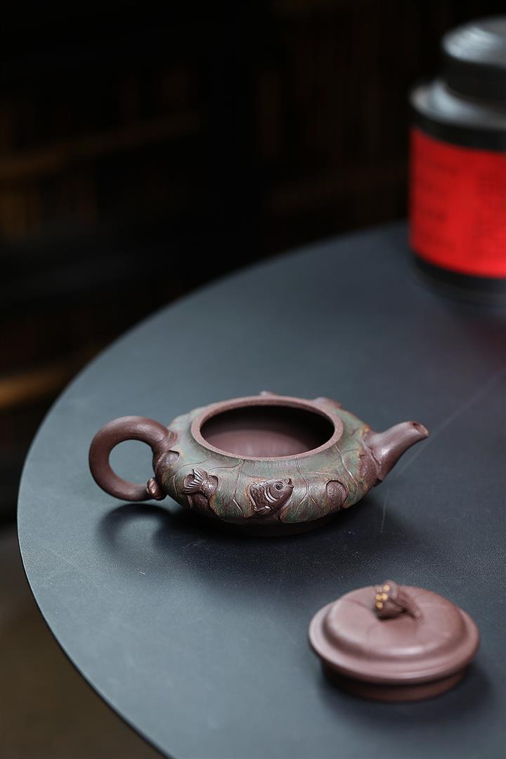 原礦老紫泥手工魚趣蓮蓬茶壺POT6671
