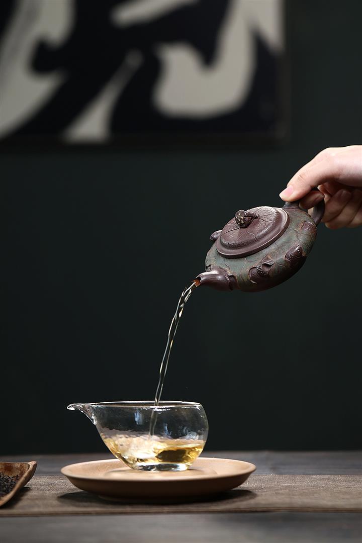 【泥料特點】砂土氣重,似淳實農民,日久使用,漸露鋒芒,養成變化溫潤莊重。紫砂是一種雙重氣孔結構的多孔性材質,氣孔微細,密度高。用紫砂壺沏茶,不失原味,且香不渙散,得茶之真香真味。紫砂使用越久,壺身色澤越發光亮照人,氣韻溫雅。紫砂壺長久使用器身會因撫摸擦拭,變得越發溫潤光澤!