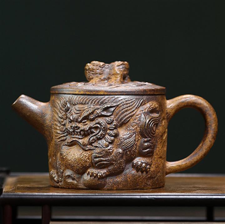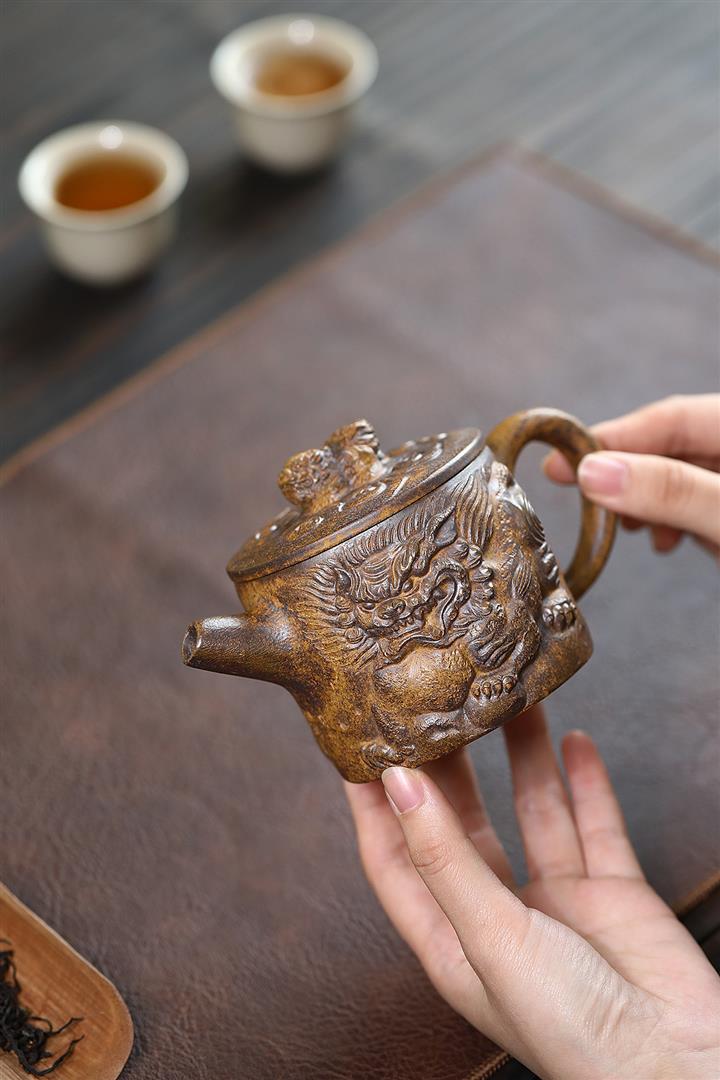 原礦老紫泥手工麟止呈祥茶壺POT6677