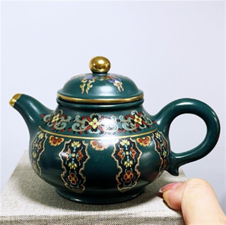 原礦老墨綠泥家藏琺瑯彩潘壺POT6680