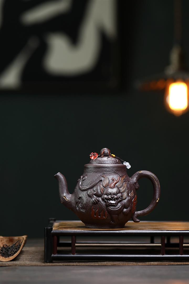 原礦老紫泥手工麟止呈祥茶壺POT6677