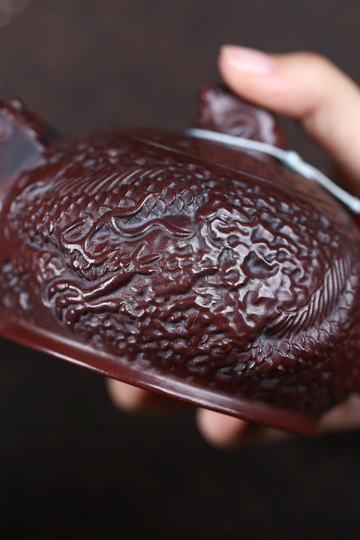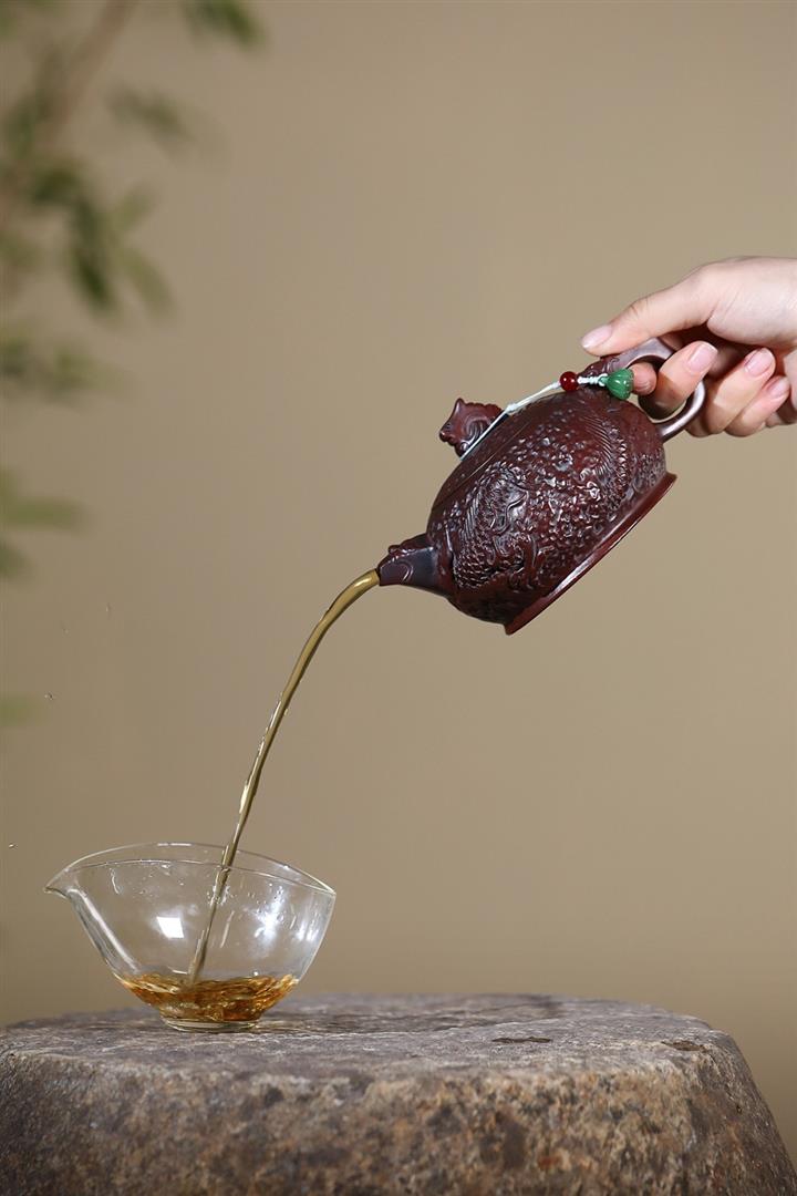 原礦赤龍血砂手工彩繪三足橋瓢茶具POT6688