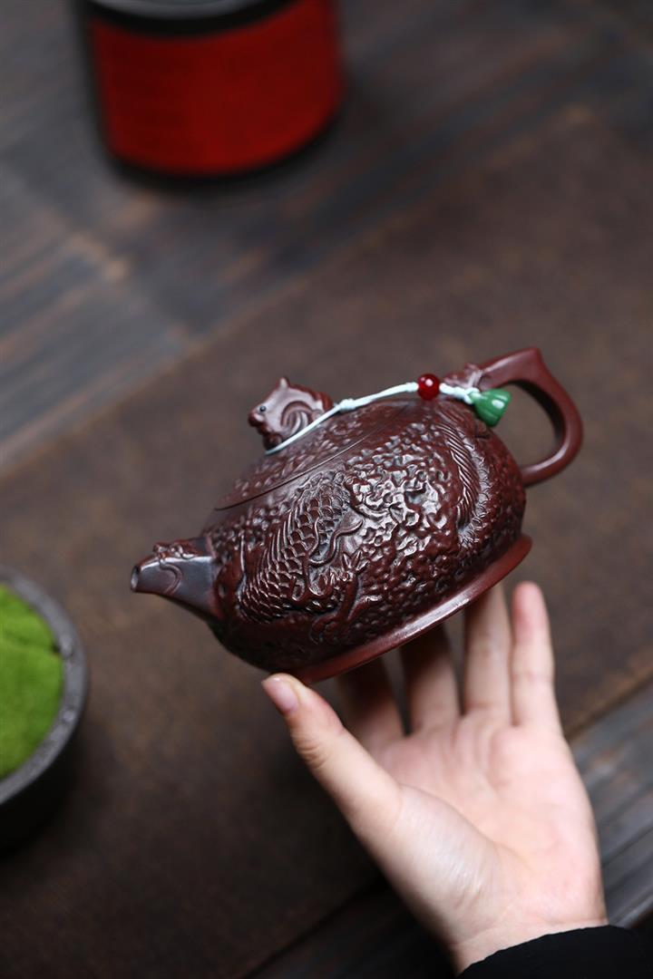原礦古銅烏泥手工龍紋德鐘茶壺POT6687
