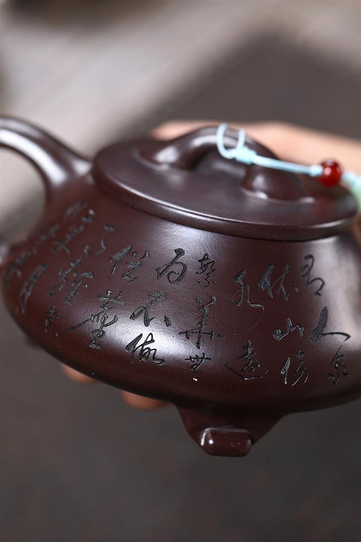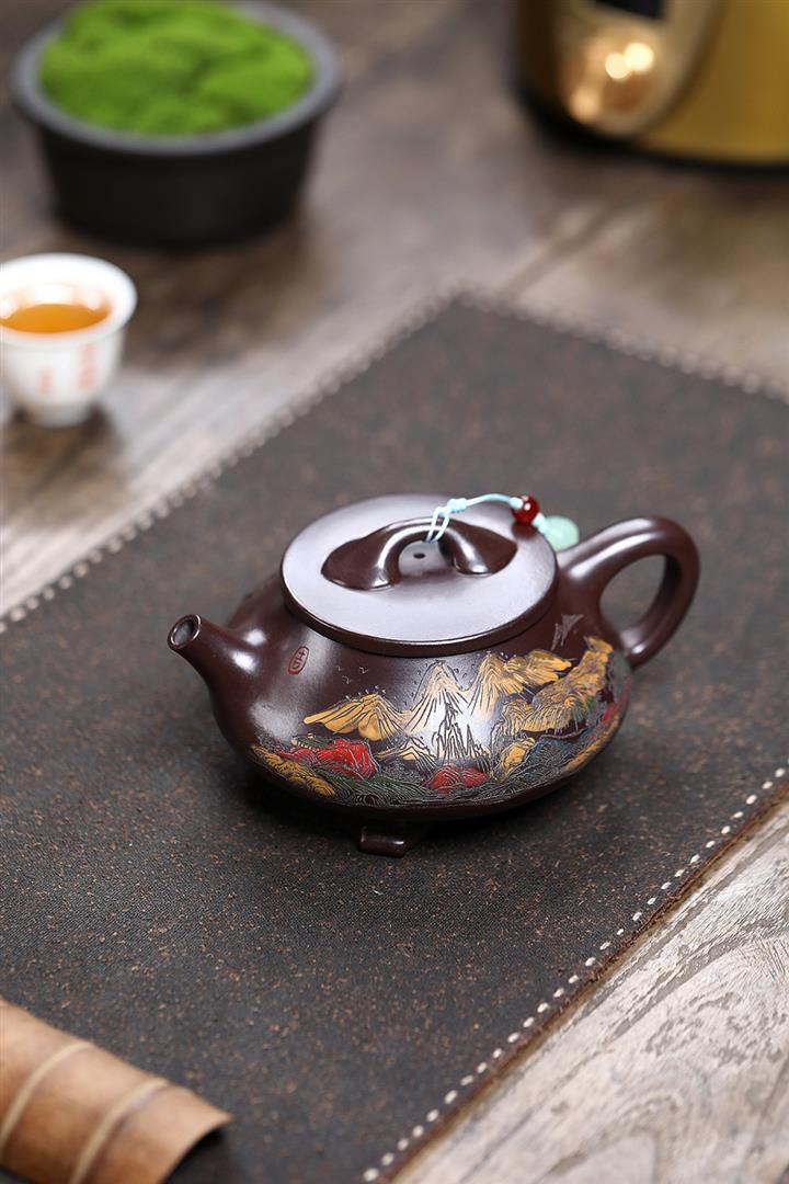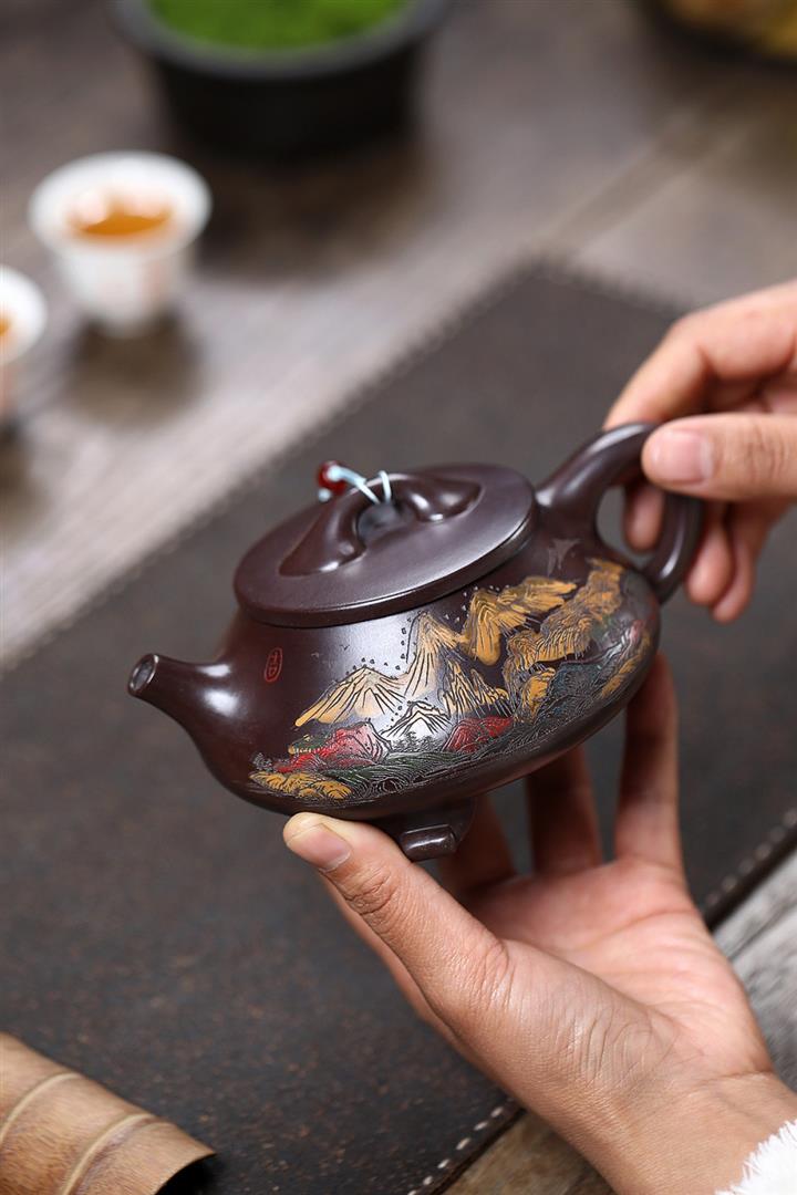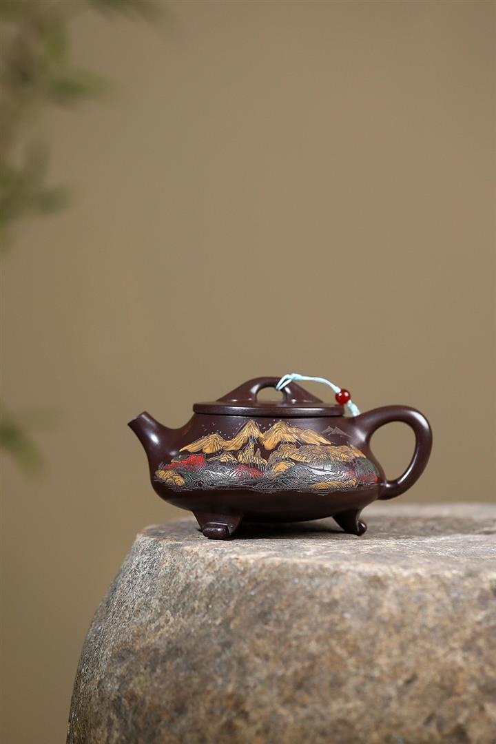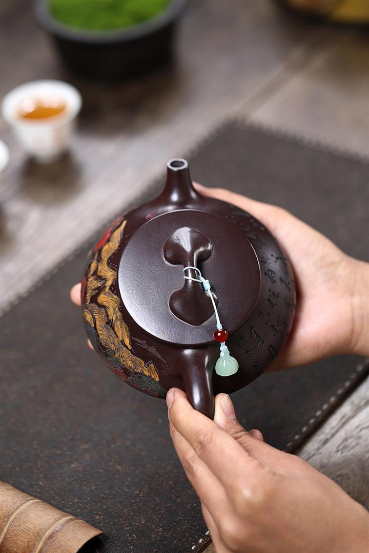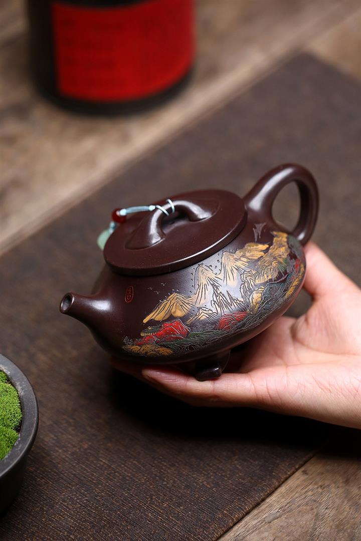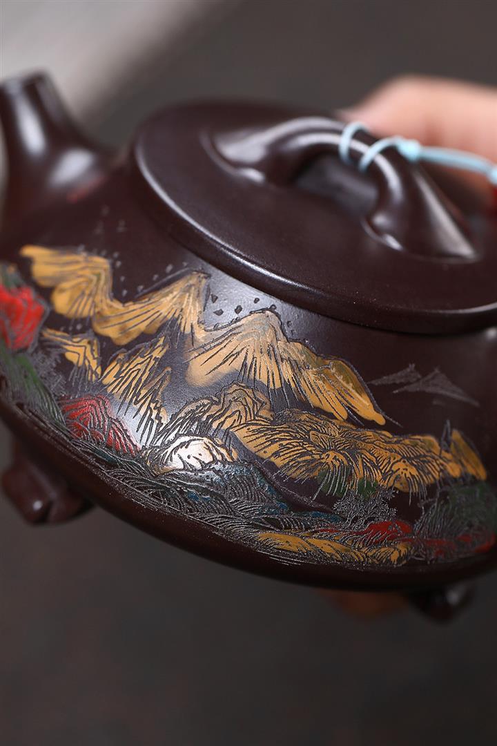 原礦赤龍血砂手工彩繪三足橋瓢茶具POT6688