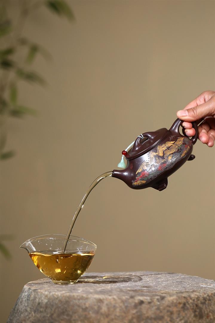 紫砂使用越久,壺身色澤越發光亮照人,氣韻溫雅。紫砂壺長久使用器身會因撫摸擦拭,變得越發溫潤光澤!