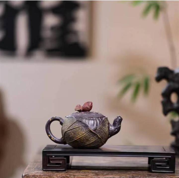 原礦紫泥手工雕塑獨占鰲頭茶寵壺POT6702