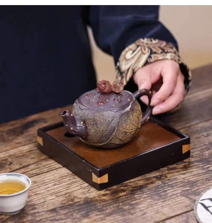 原礦鄒皮朱泥手工金蓮龍蛋茶壺POT6707