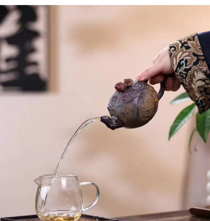 原礦深井紫泥手工金蟾獻瑞壺POT6729