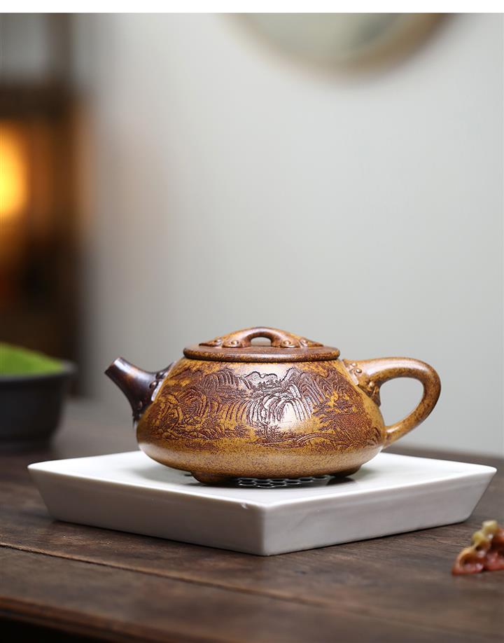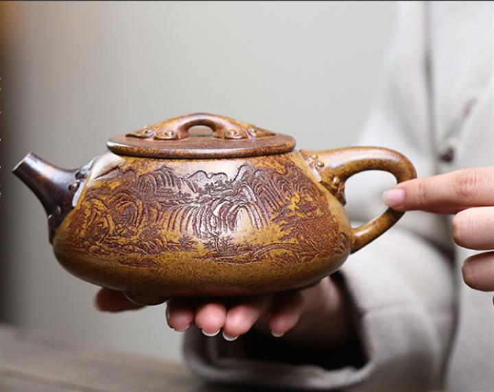 原礦龍骨金砂龍窯柴燒如意石瓢紫砂壺POT6701