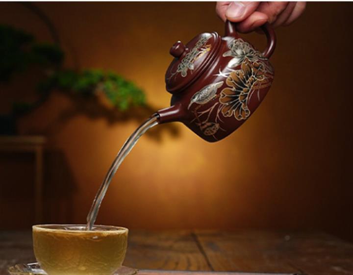 原礦石黃泥手工鎏金寒江紫砂壺POT6711