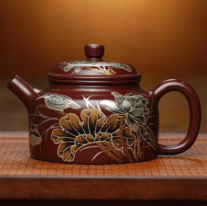 原礦紫泥手工鎏金德鐘茶壺POT6710
