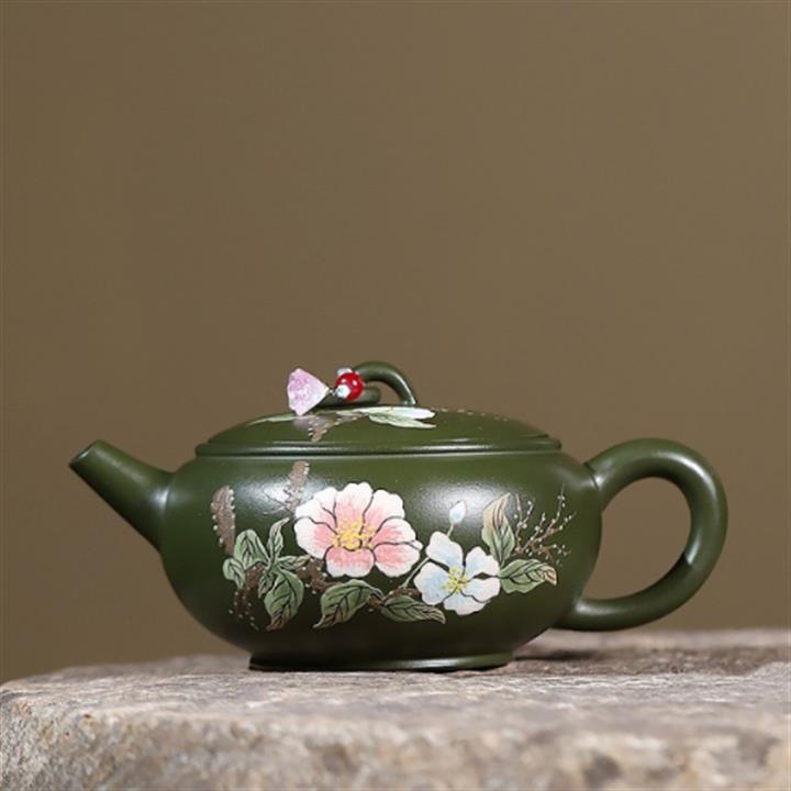 原礦綠泥手工花繪玉碗茶壺POT6719