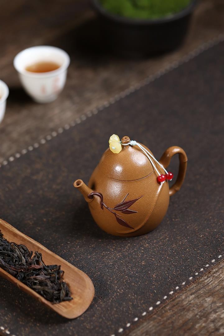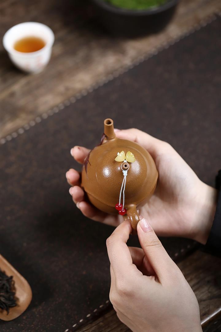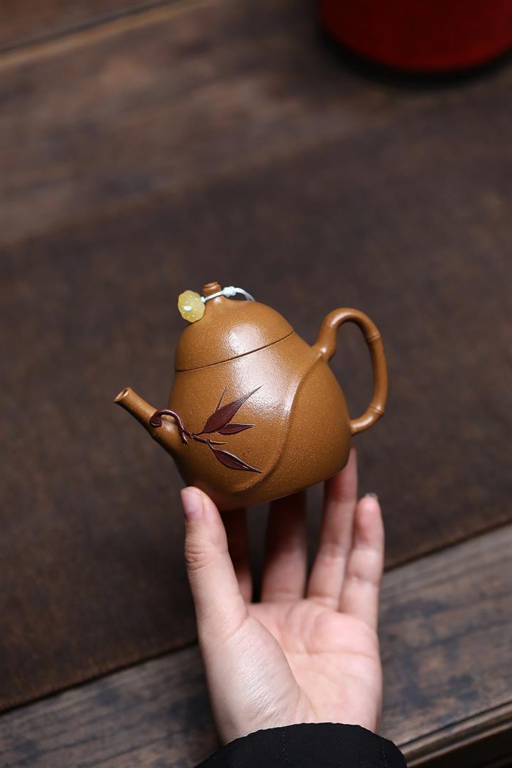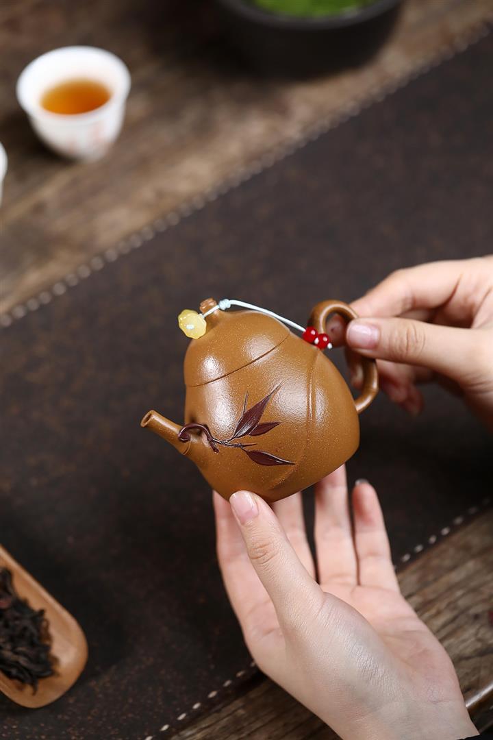 【簡介】此壺比例勻稱,精巧可愛,色澤明暗有度,古雅大氣,在泥色和勾勒效果上更顯清素典雅,整器渾圓柔美,高雅光潤,註重實用性和藝術性,淩厲飄逸,自成一派,收藏價值倍增。耳型壺把,拿捏舒適,精製外觀,簡約時尚,溫暖隨行,壺到「福」到,你值得擁有。