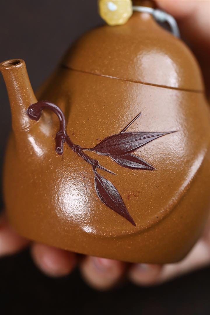 原礦墨綠泥手工滿刻提梁壺POT6720