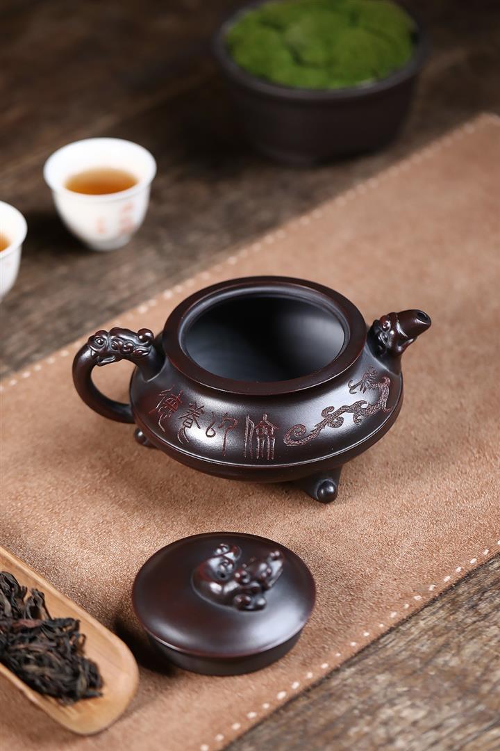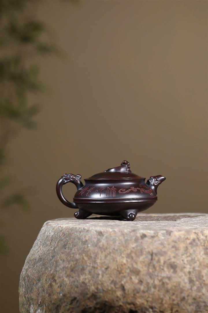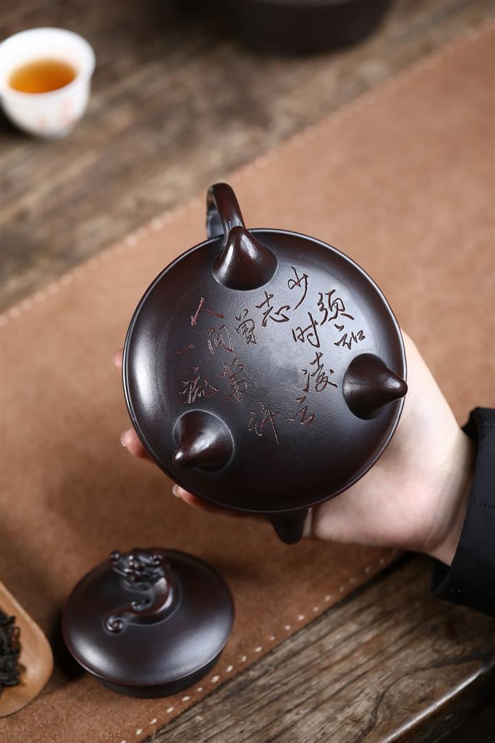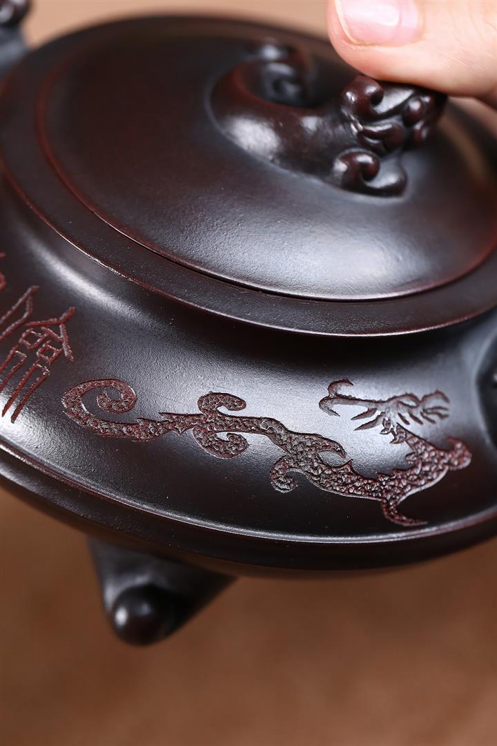原礦古銅烏泥手工三足龍鼎茶壺POT6722