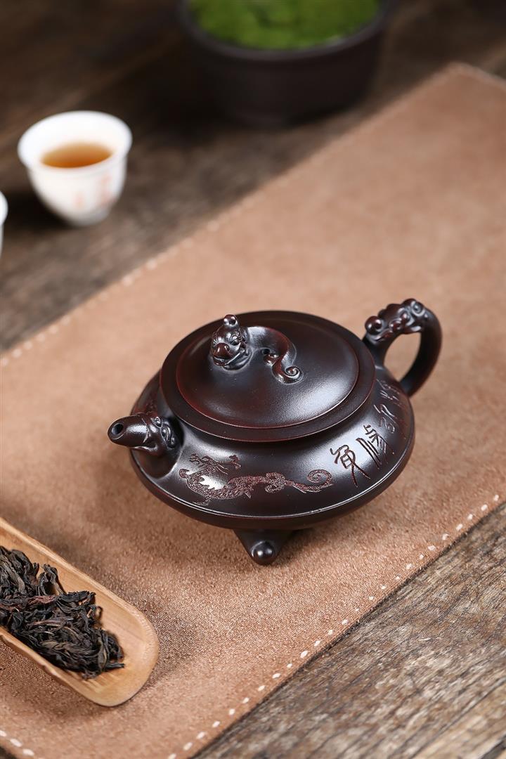原礦鐵血紅砂手工三足龍尊茶壺POT6733