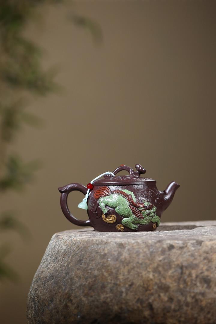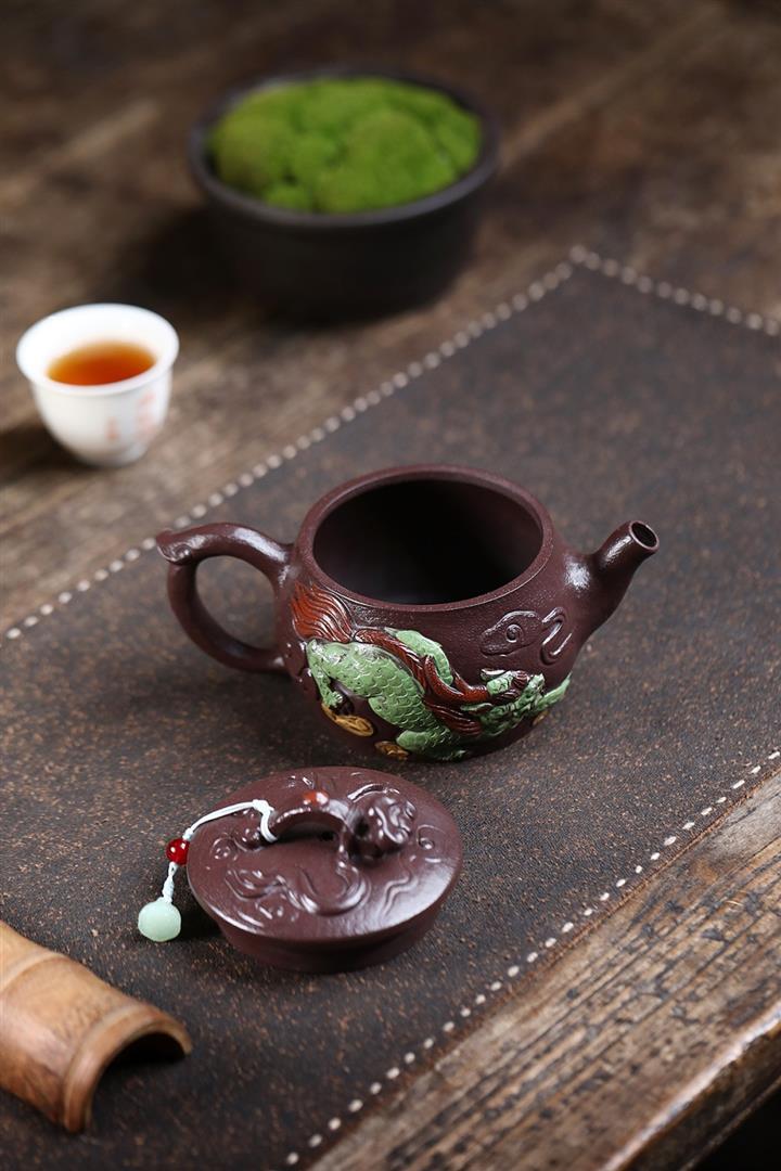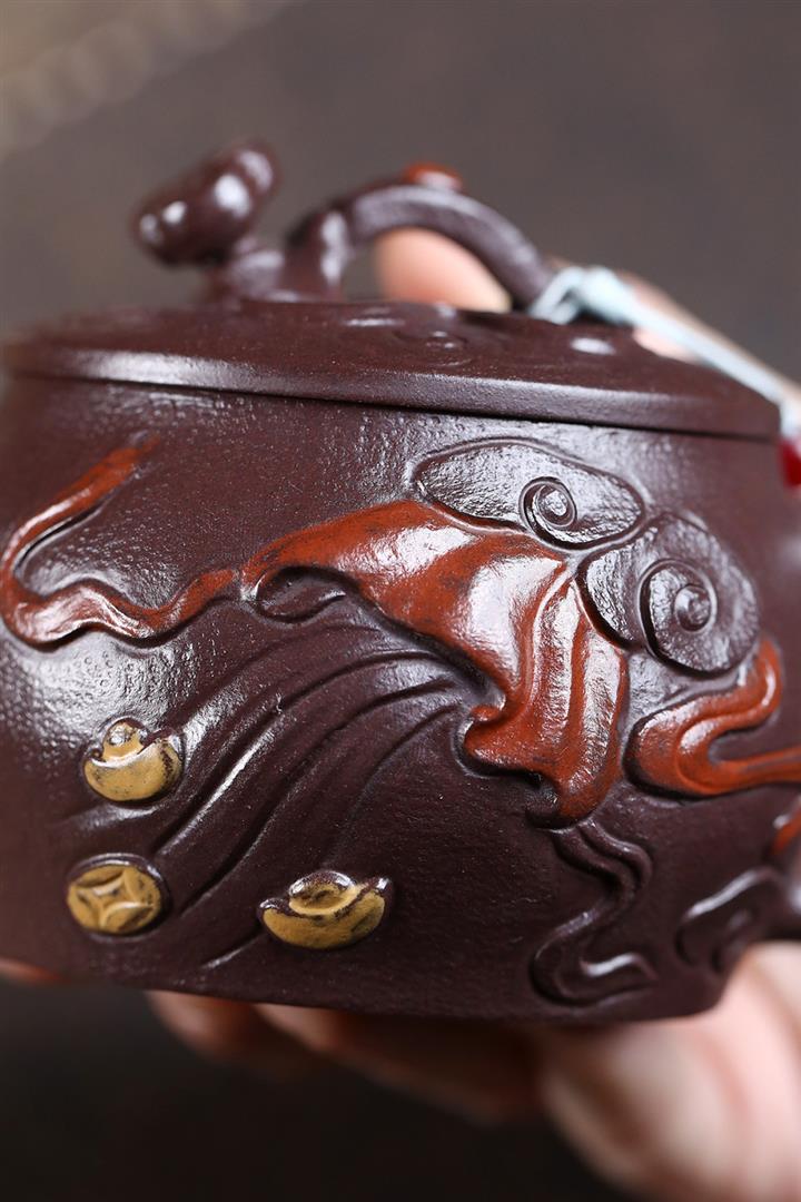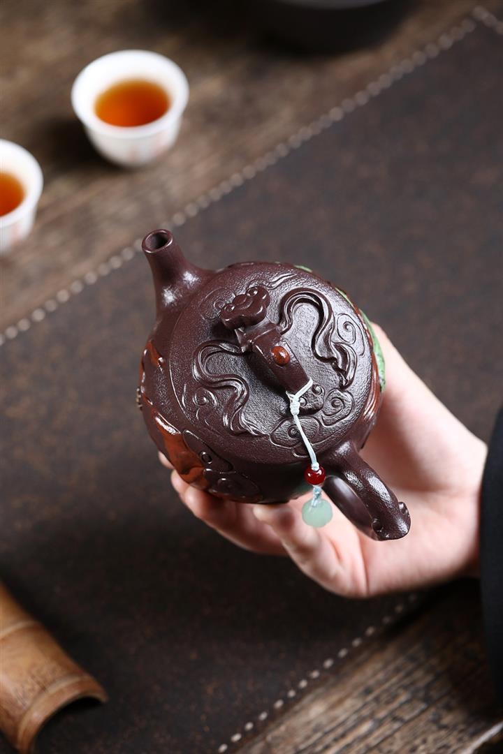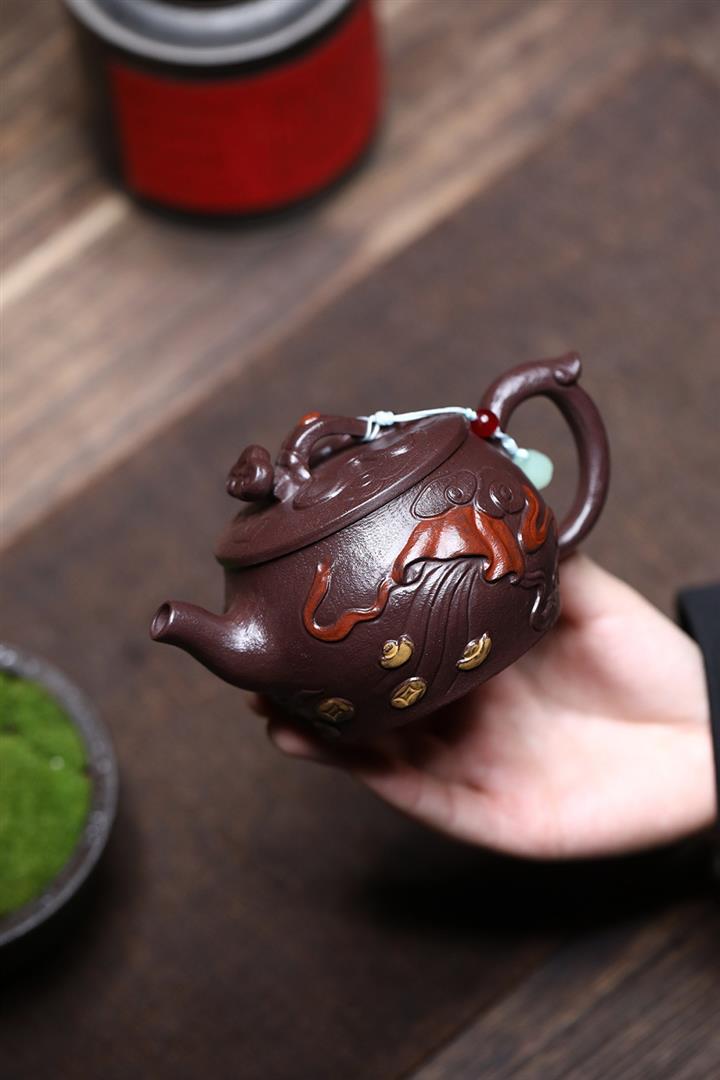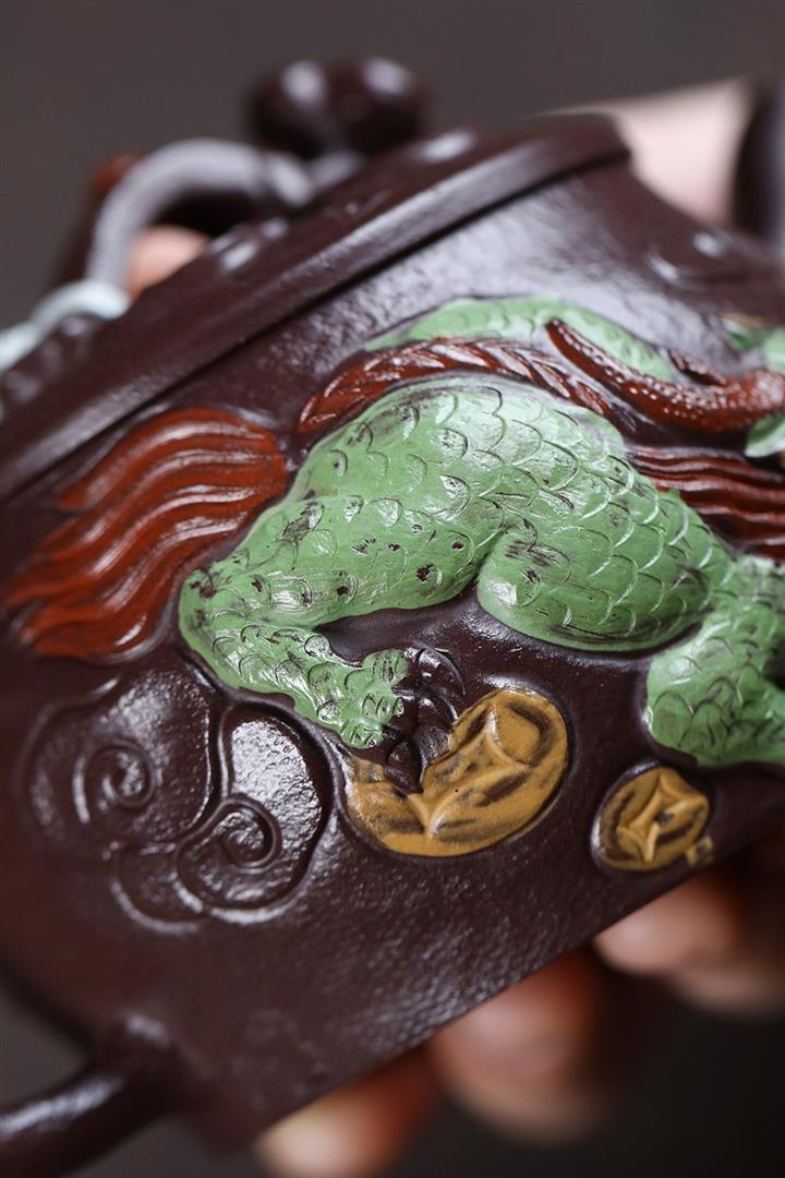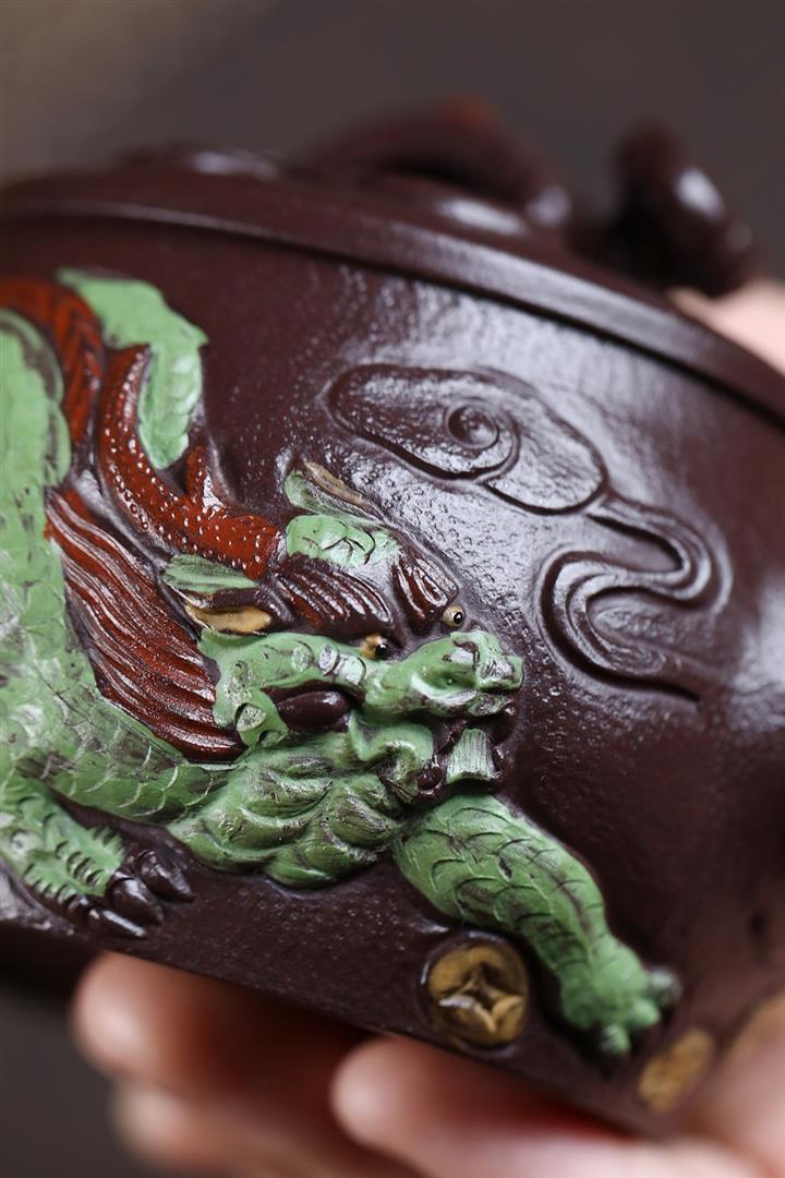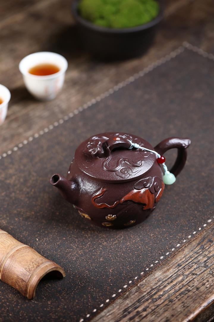 原礦紫玉金砂手工潛龍戲珠茶壺POT6730