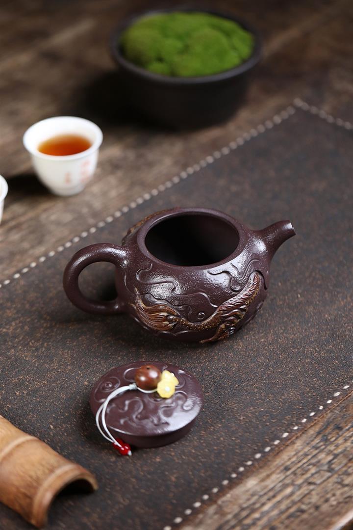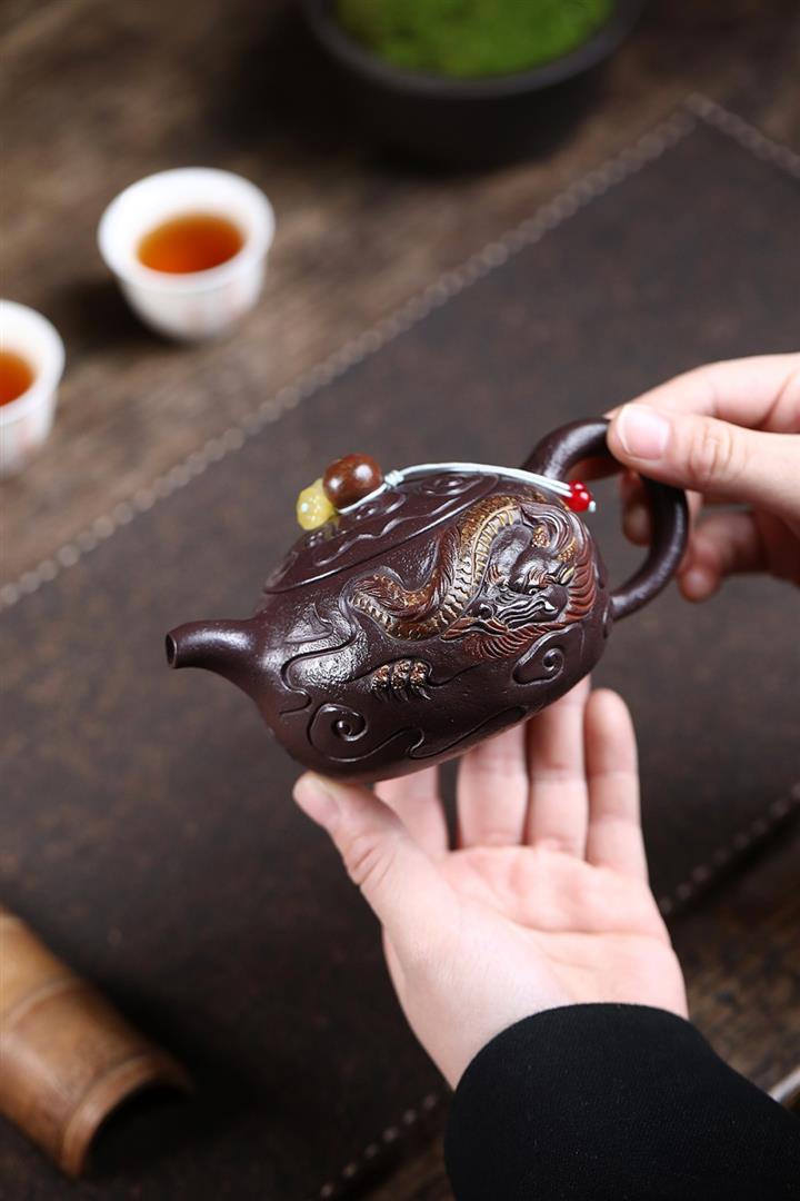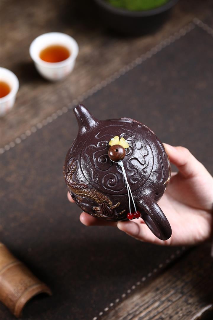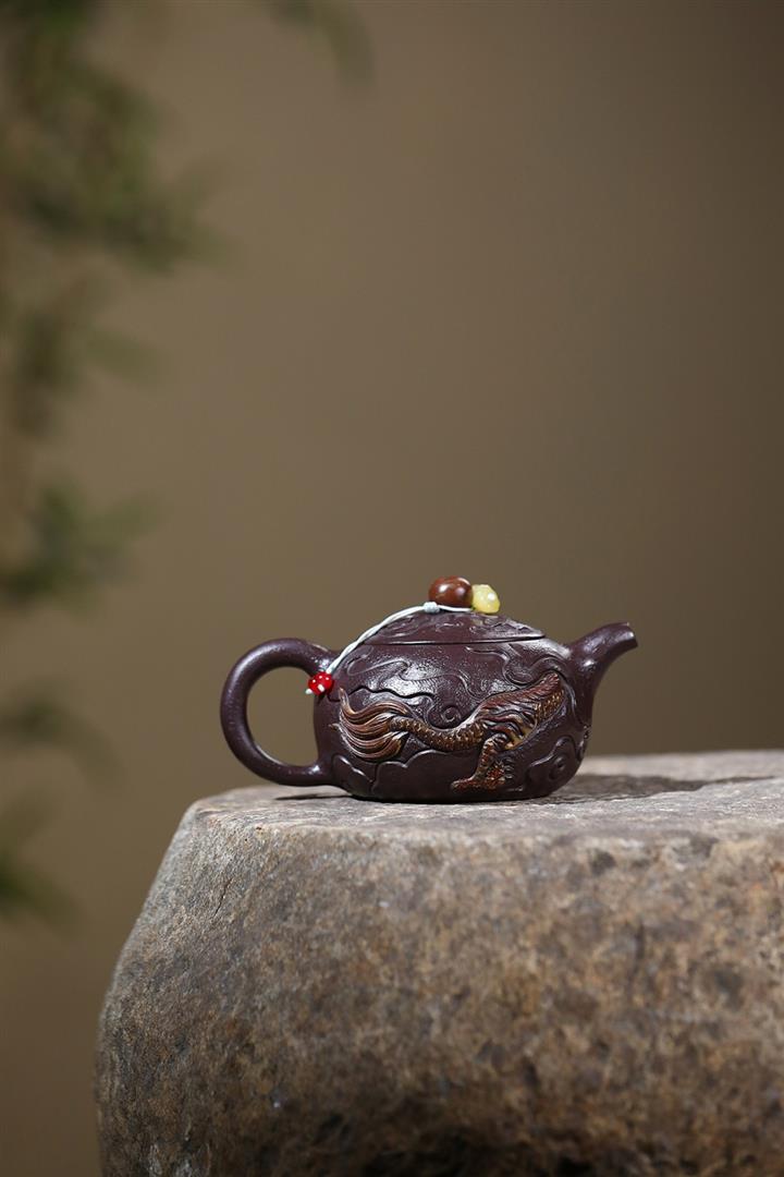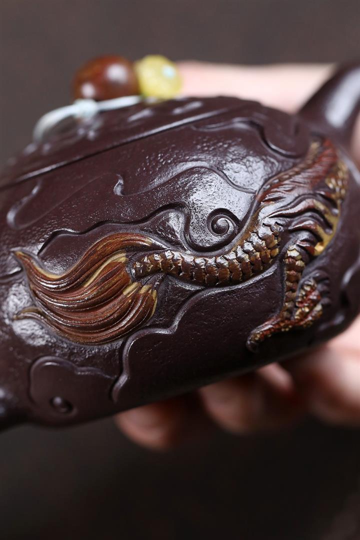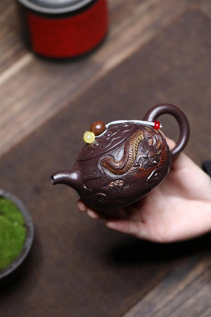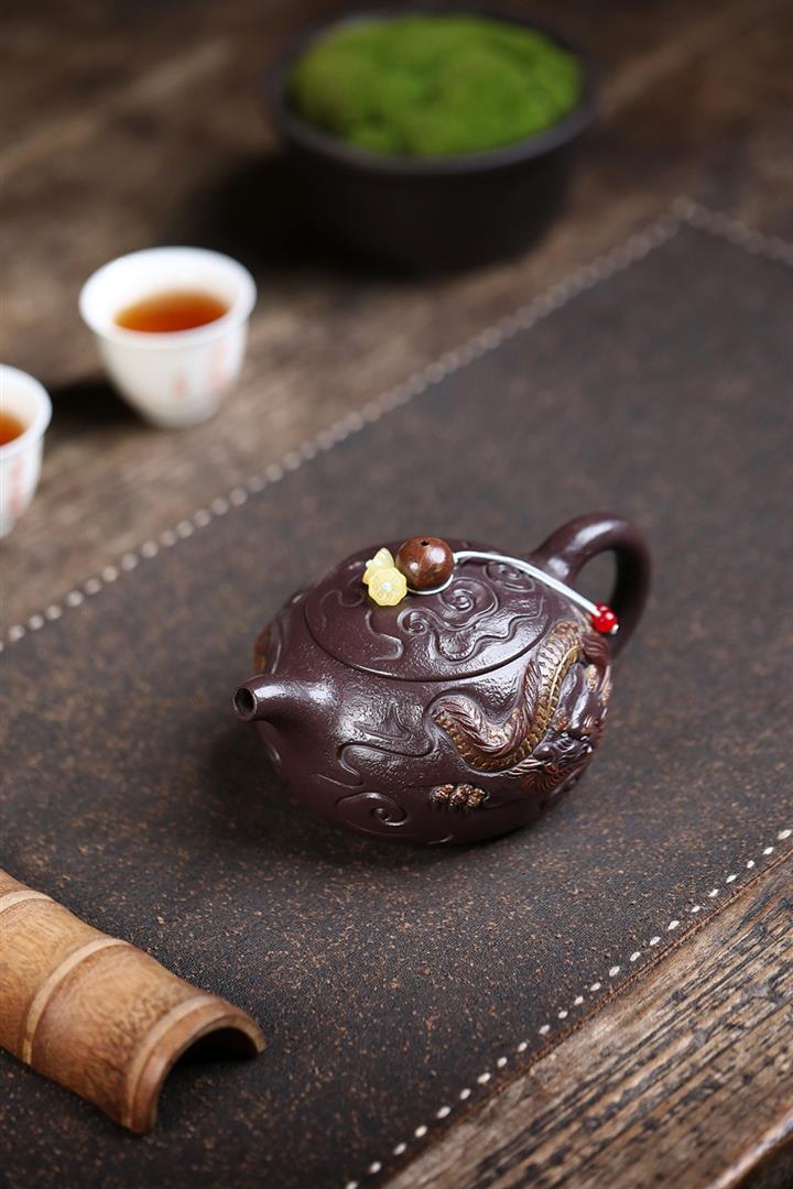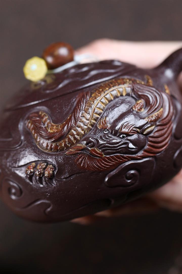 原礦紫玉金砂手工潛龍戲珠茶壺POT6730