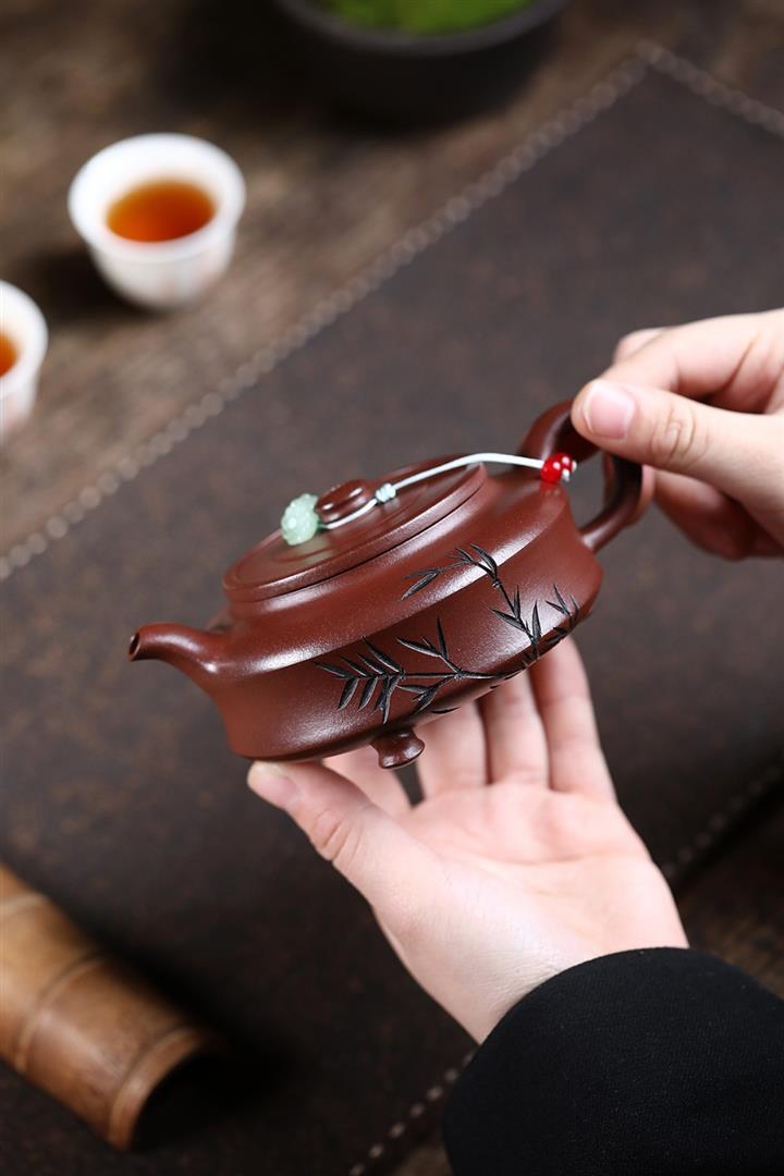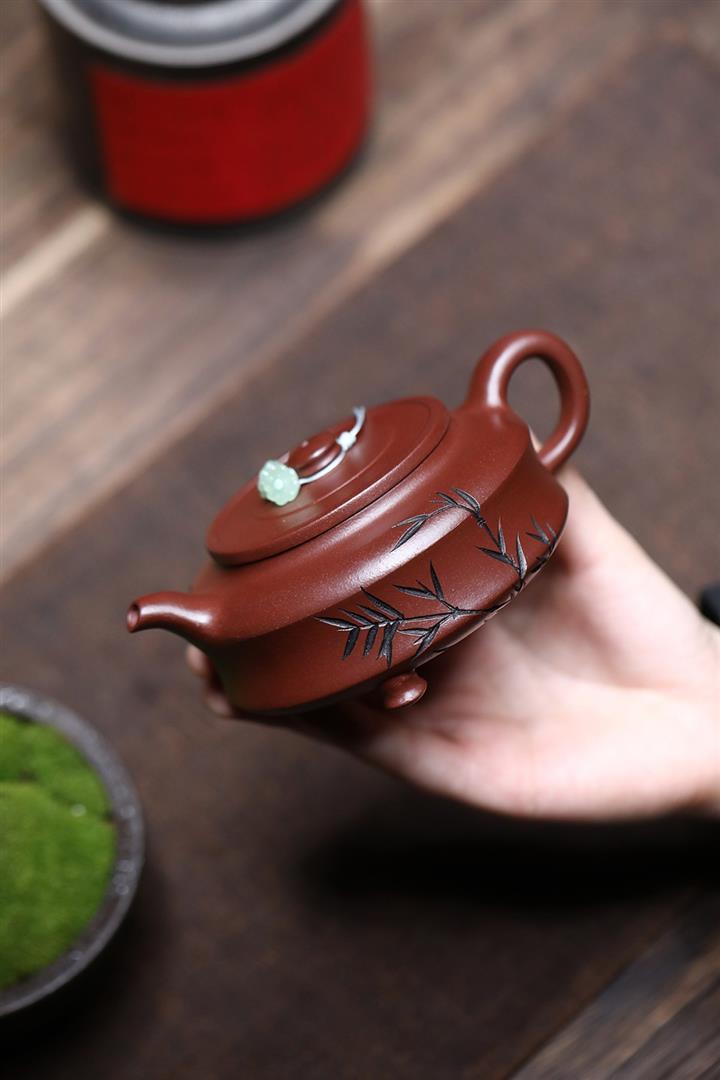 【簡介】此壺比例勻稱,精巧可愛,色澤明暗有度,古雅大氣,在泥色和勾勒效果上更顯清素典雅,整器渾圓柔美,高雅光潤,註重實用性和藝術性,淩厲飄逸,自成一派,收藏價值倍增。耳型壺把,拿捏舒適,精製外觀,簡約時尚,溫暖隨行,壺到「福」到,你值得擁有。