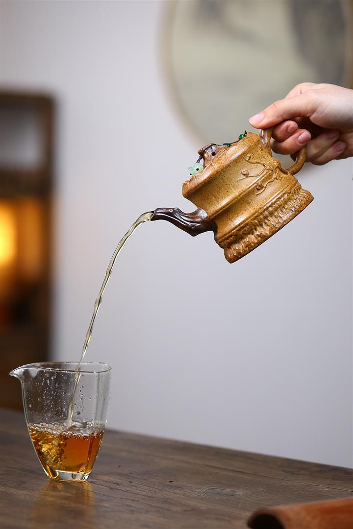 原礦黃金段手工知足常樂竹節漢瓦壺POT6738