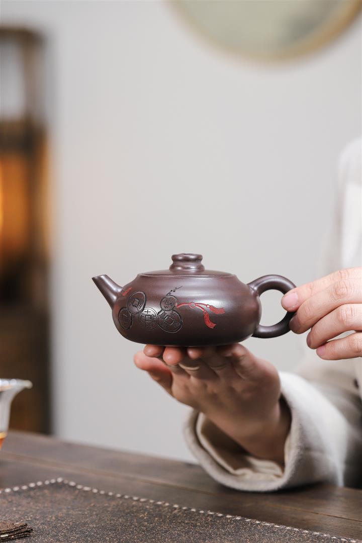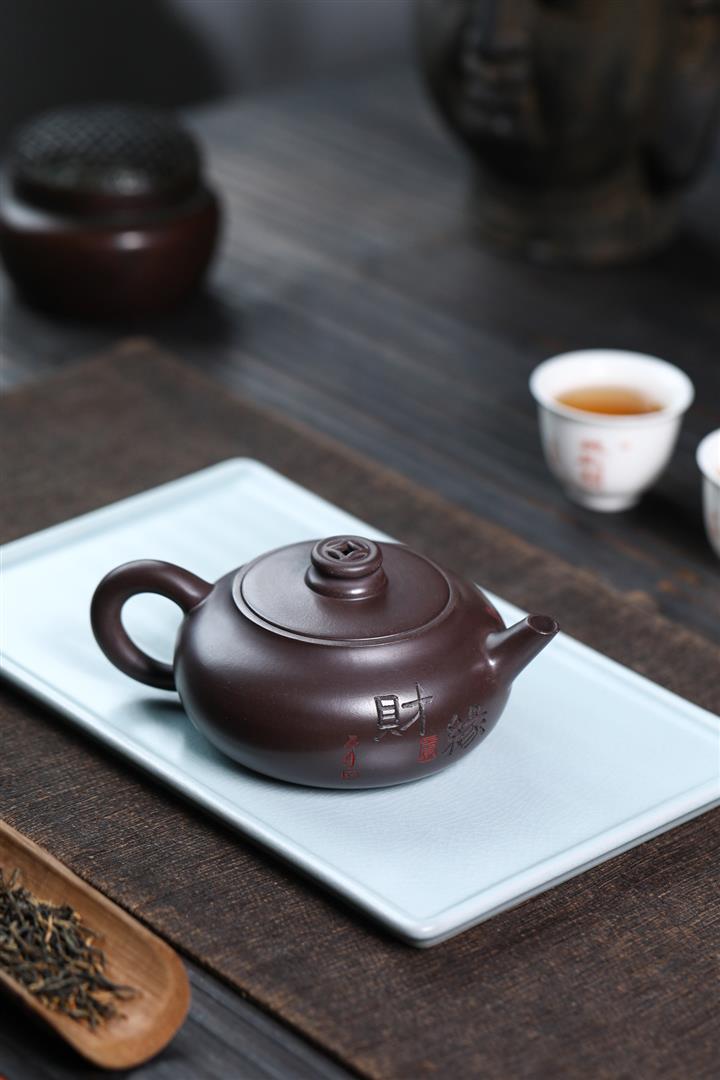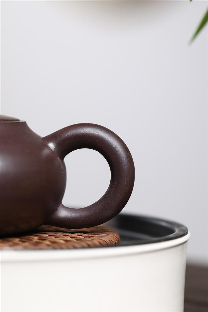 【簡介】此壺比例勻稱,精巧可愛,色澤明暗有度,古雅大氣,在泥色和勾勒效果上更顯清素典雅,整器渾圓柔美,高雅光潤,註重實用性和藝術性,淩厲飄逸,自成一派,收藏價值倍增。耳型壺把,拿捏舒適,精製外觀,簡約時尚,溫暖隨行,壺到「福」到,你值得擁有。