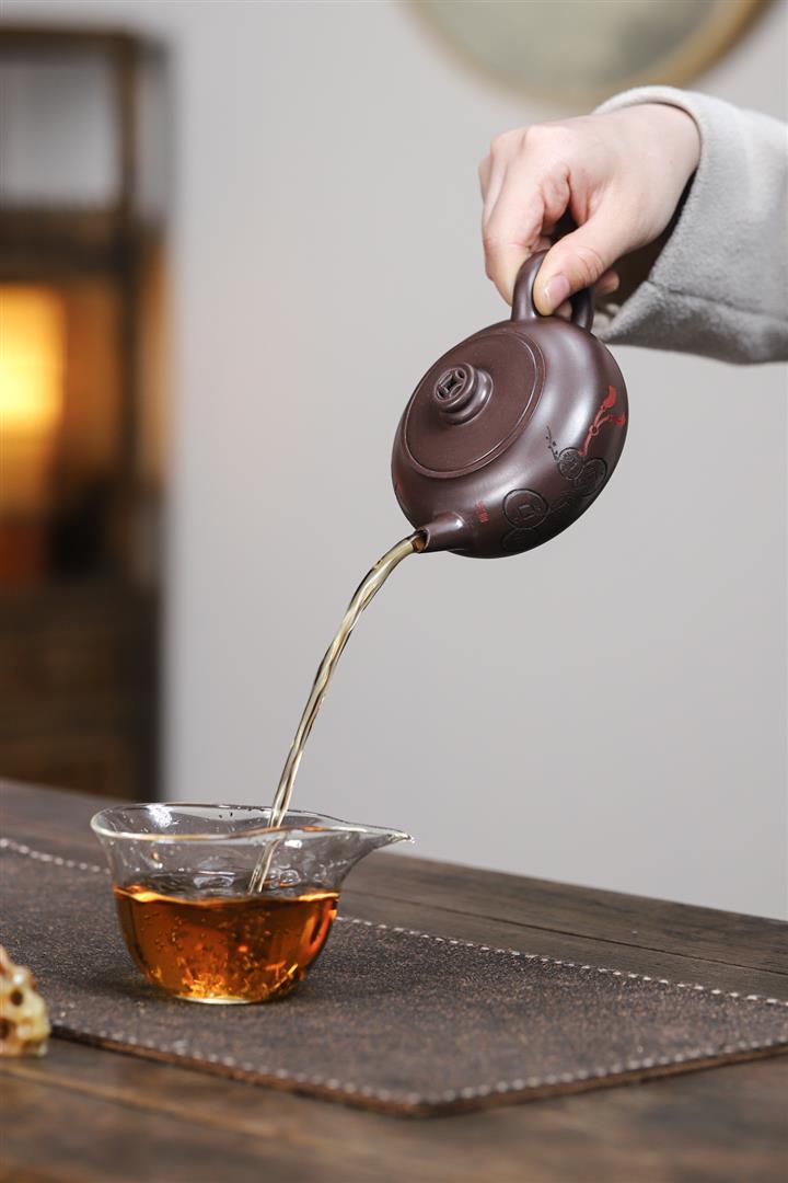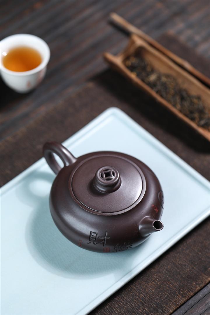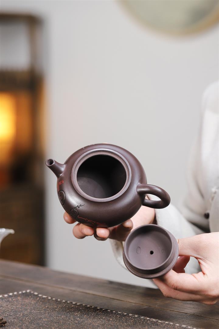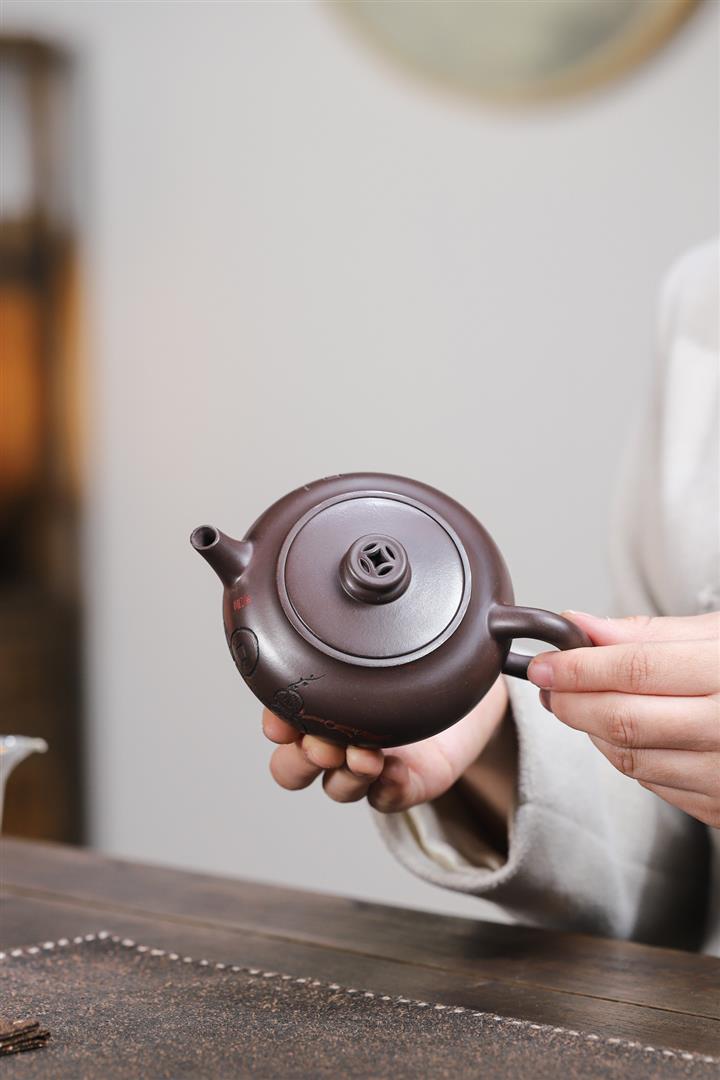 原礦皺皮朱泥墨梅扁碗玉壺茶壺POT6804