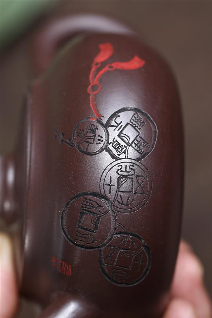 原礦大紅袍手工蛇紋鎏金龍紋壺POT6775