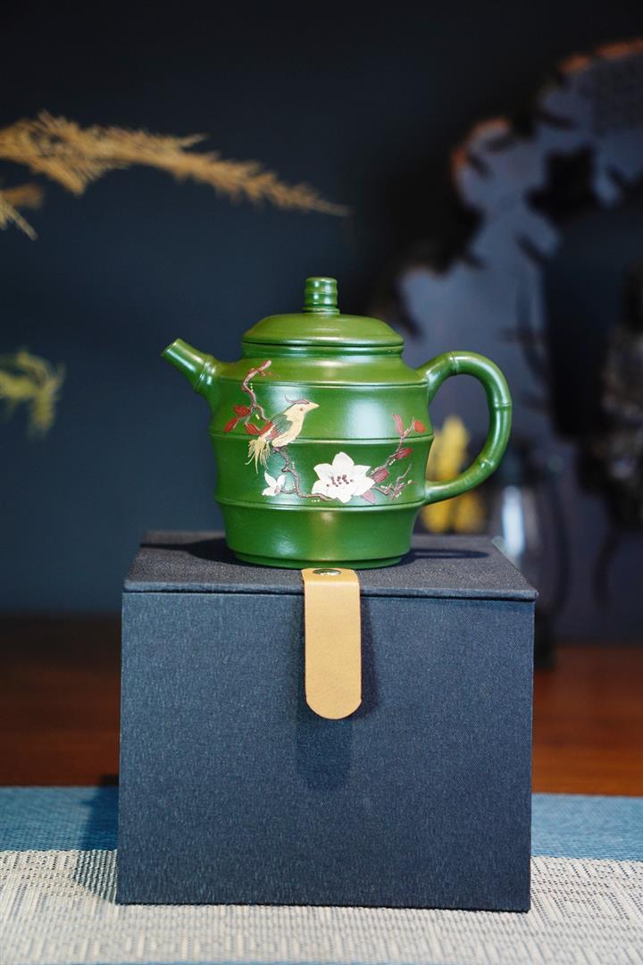 原礦綠泥手工鳥語花香竹節高升茶壺POT6802