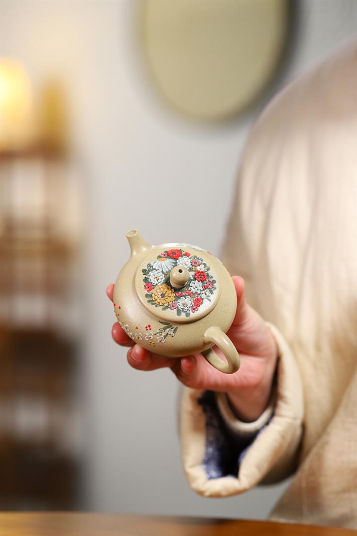 原礦冷黃金純手工刻繪周盤壺POT6758