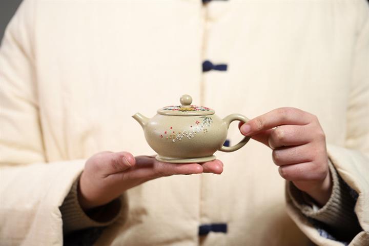 原礦紫朱泥手工描金漁翁茶壺POT6764