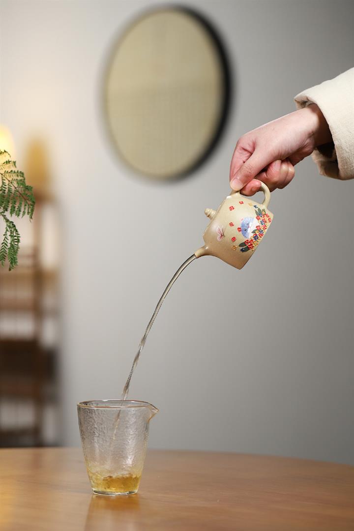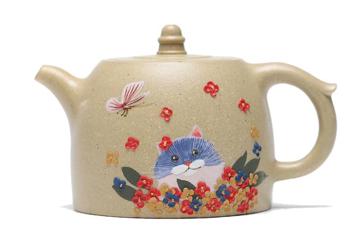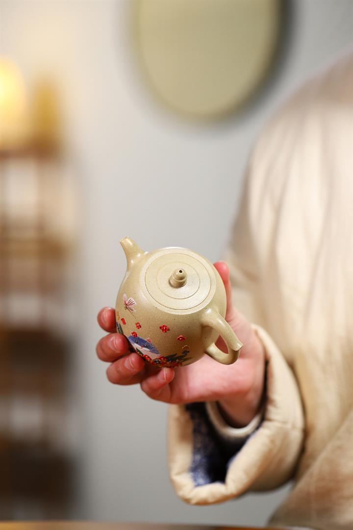 【泥料特點】砂土氣重,似淳實農民,日久使用,漸露鋒芒,養成變化甚大,溫潤莊重。線條優美自然,嘴把搭配協調,身桶配上細長的把搭配,更顯優雅