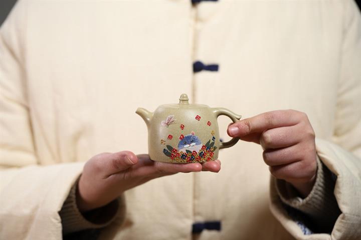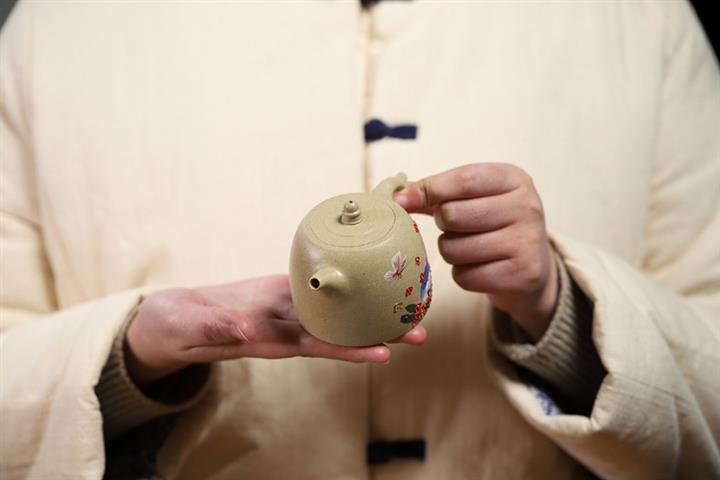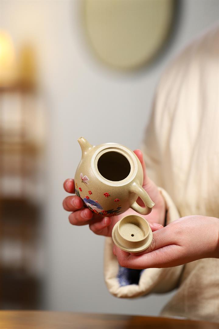 原礦紫朱泥手工描金漁翁茶壺POT6764
