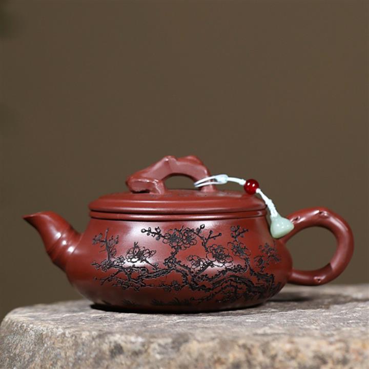 原礦龍血砂手工紅梅扁鼓茶壺POT6766