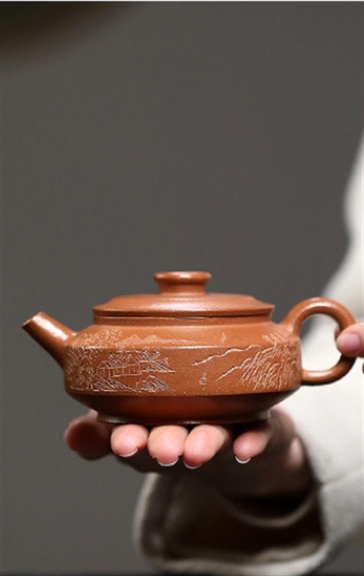 原礦龍血砂手工紅梅扁鼓茶壺POT6766