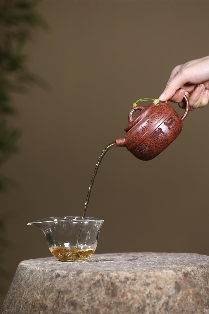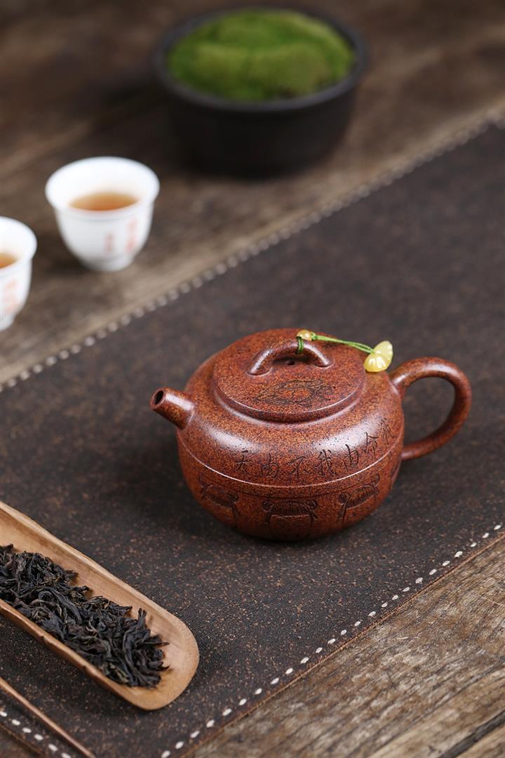 原礦龍血砂手工滿刻寶塔茶壺POT6768