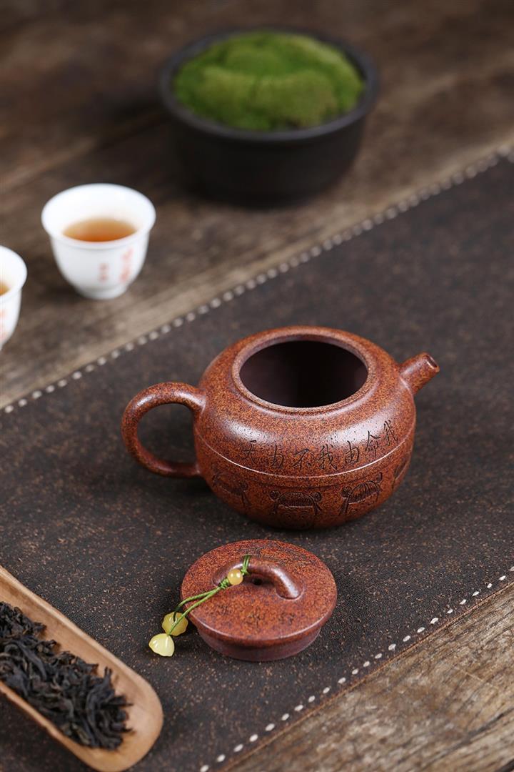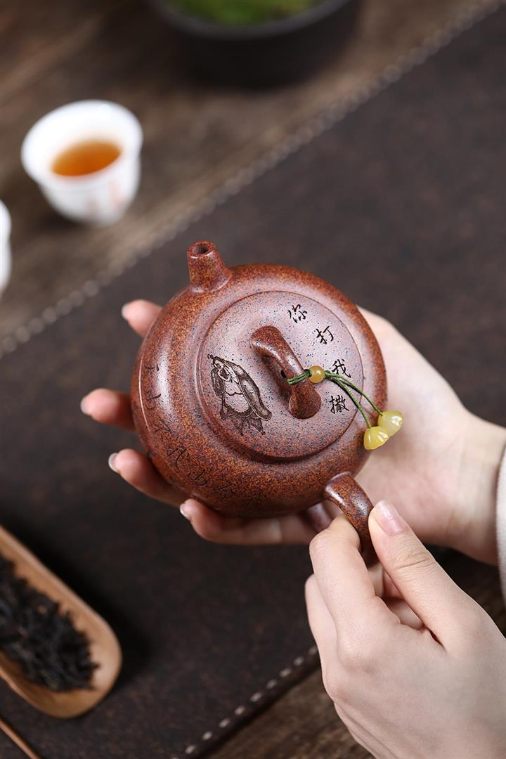 原礦龍骨金砂手工雙線圓鼓茶壺POT6759