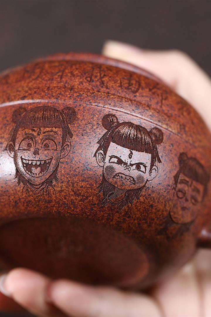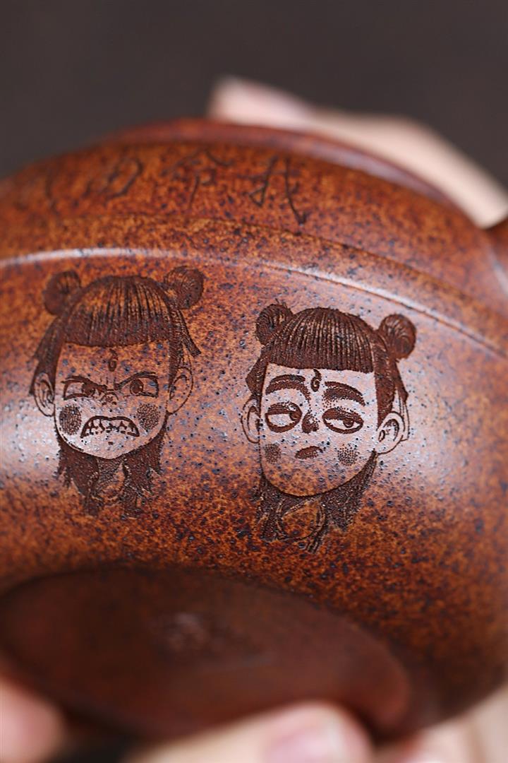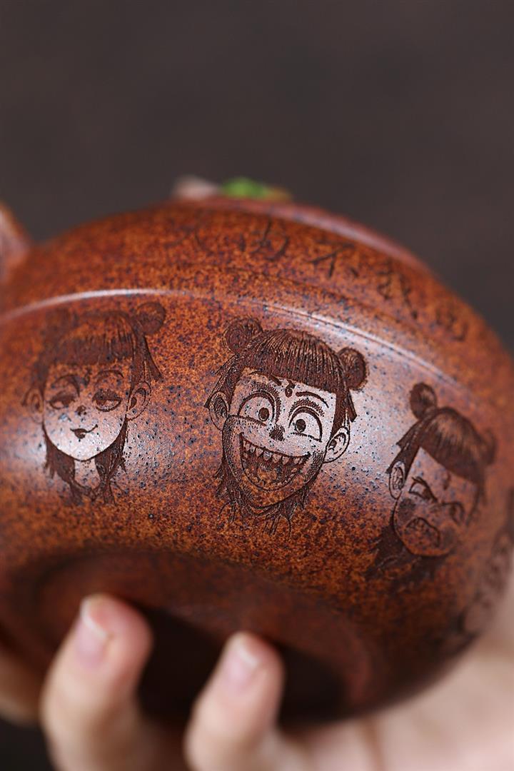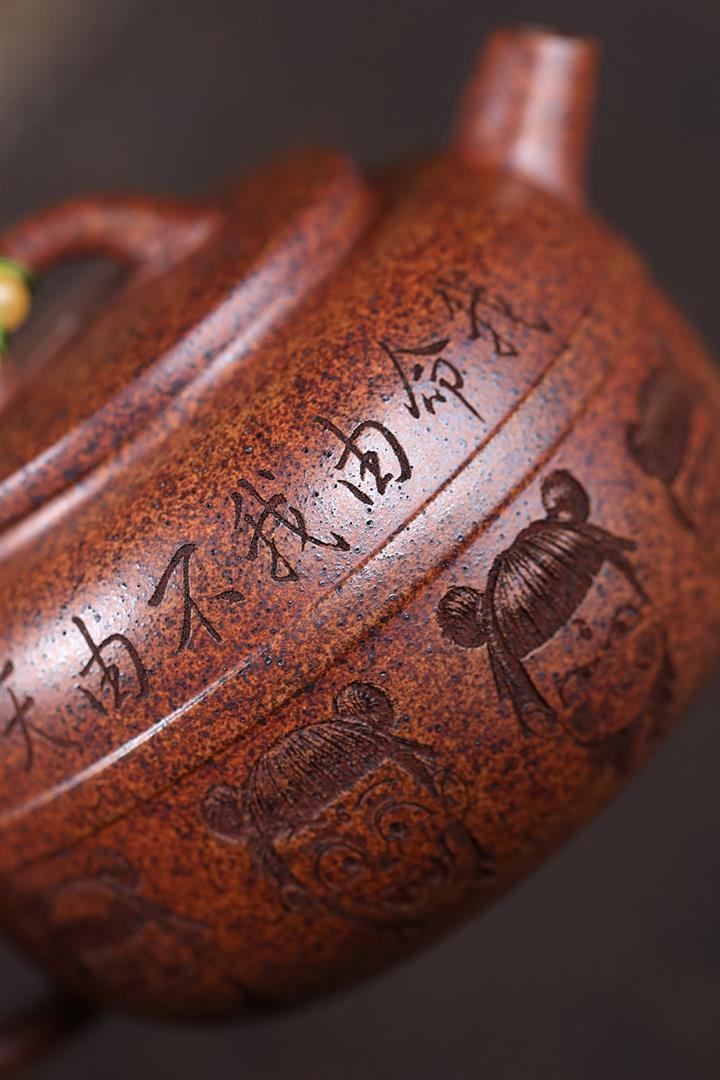 原礦龍血砂手工滿刻霸王石瓢茶壺POT6767