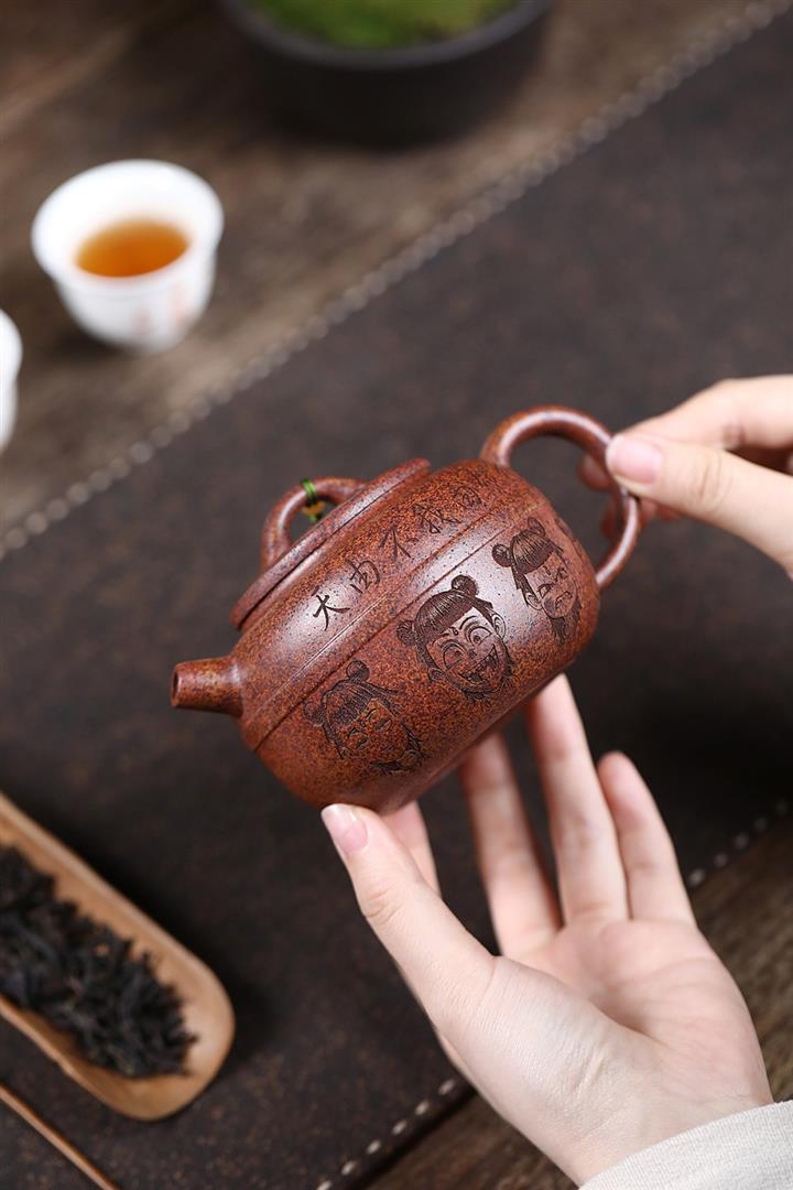 原礦紫朱泥手工描金漁翁茶壺POT6764