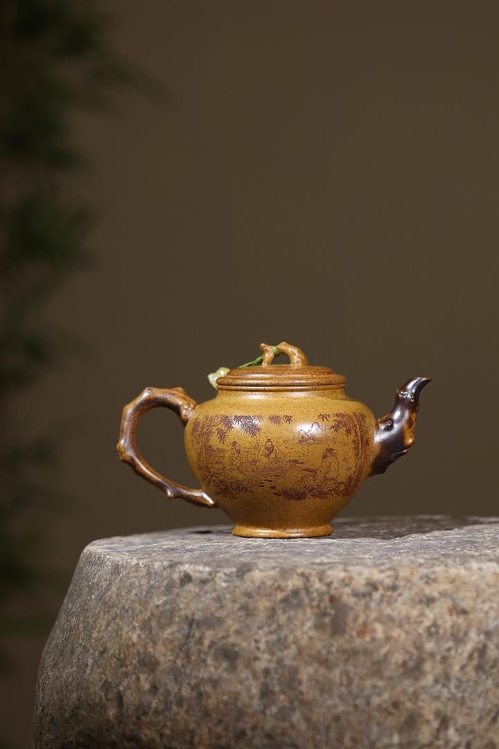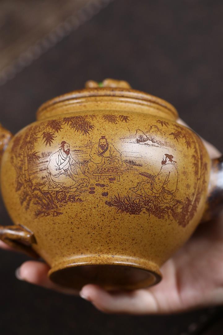 原礦紫朱泥手工描金漁翁茶壺POT6764