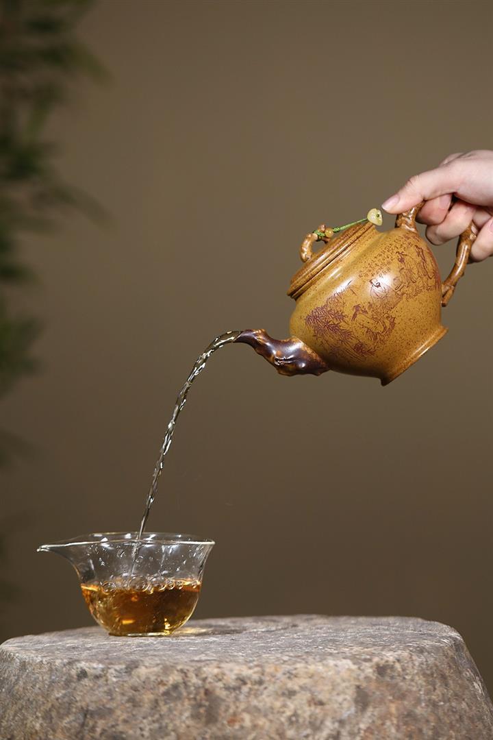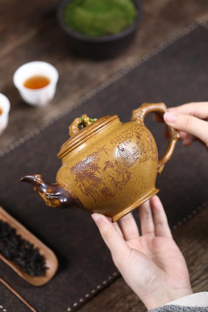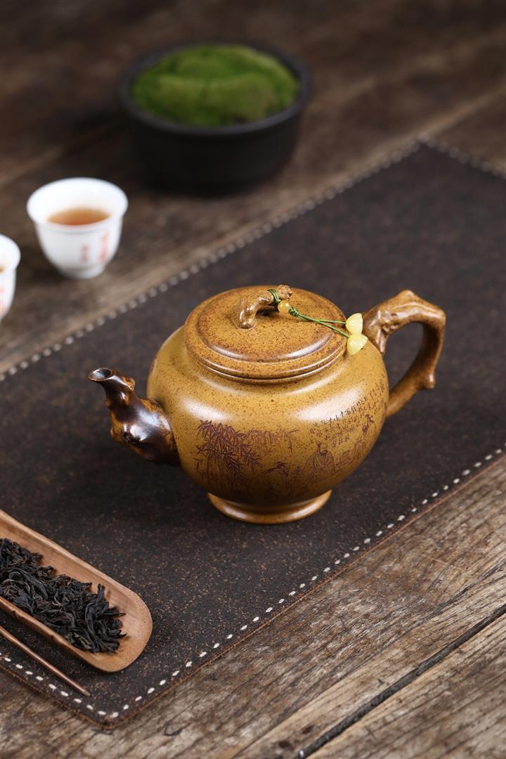 【泥料特點】透氣性好,光澤沈穩‌,日久使用,漸露鋒芒,養成變化甚大,溫潤莊重。線條優美自然嘴把搭配協調,身桶配上細長的把搭配,更顯優雅.